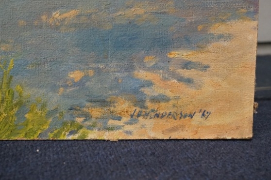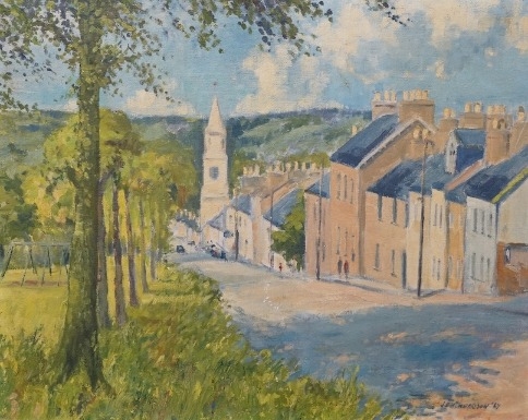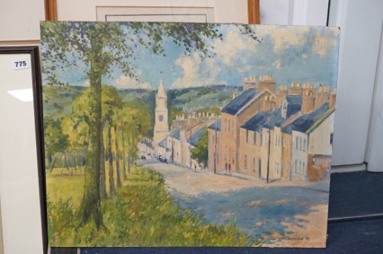 J. Henderson, mid century oil on board, Street scene, signed and dated '67, unframed.
