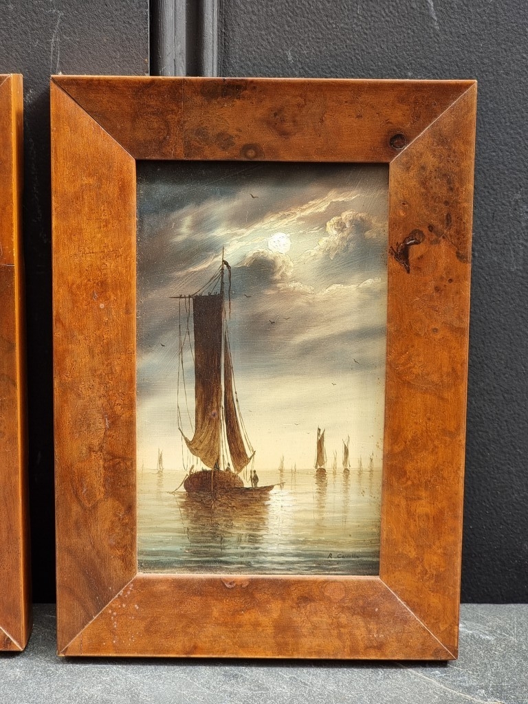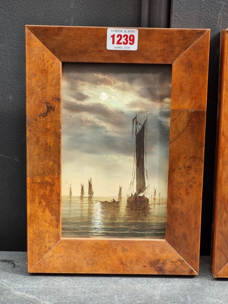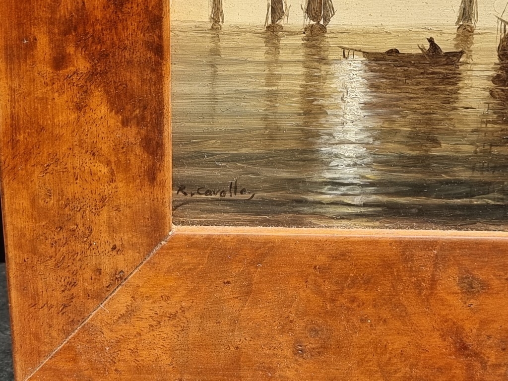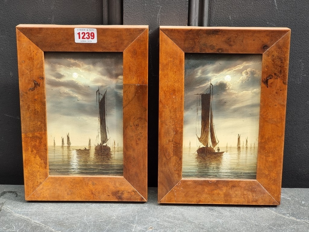 Ronald Cavalla, Dutch fishing boats, a pair, each signed, oil on board, 18.5 x 11cm. (2)