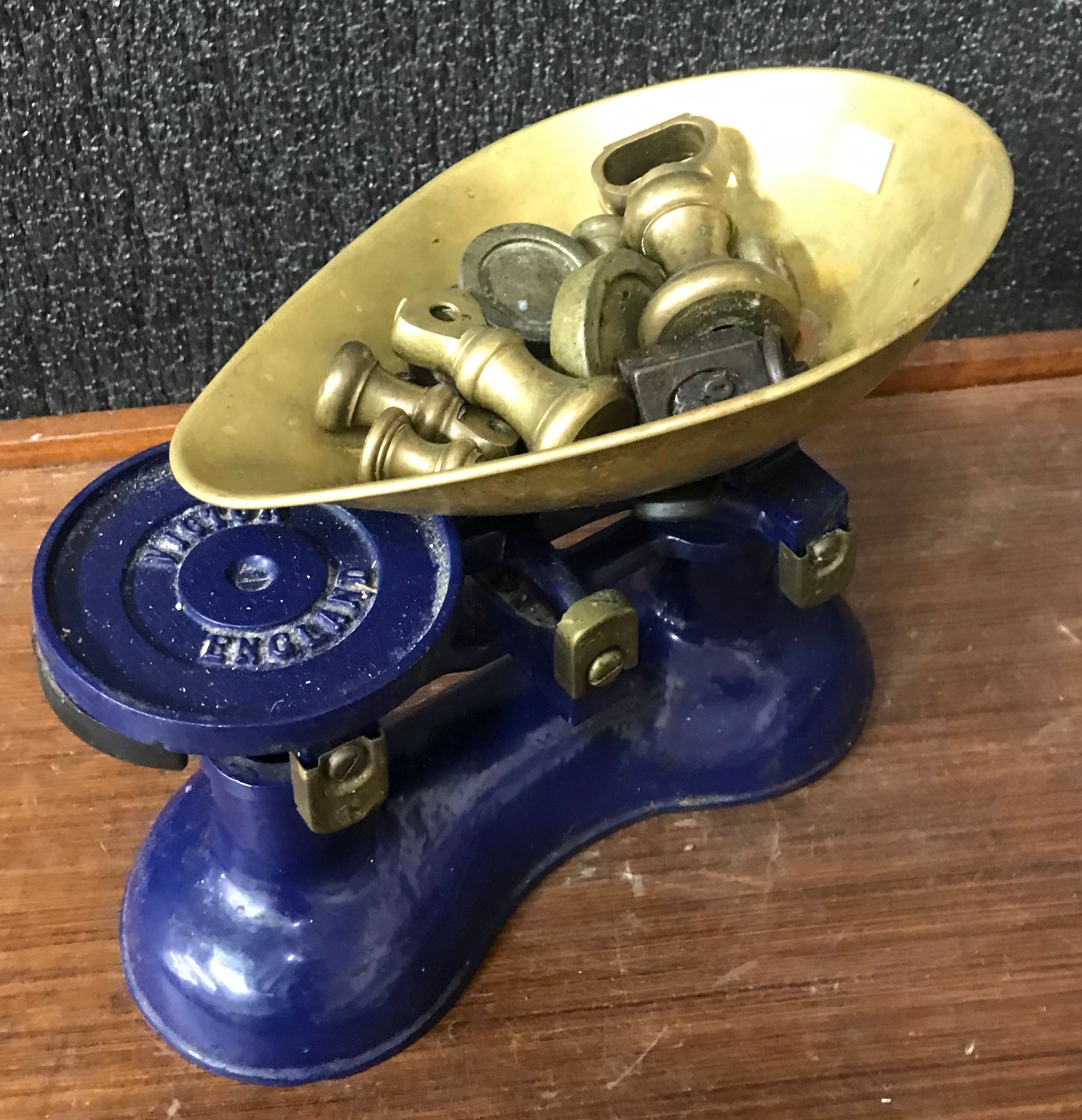 A set of Victorian kitchen scales and assorted brass weights