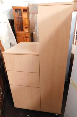 New, unused locker with 3 drawers in beech on castors