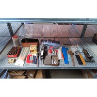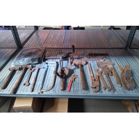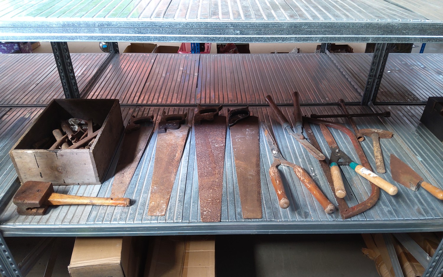 Wooden tool box with vintage tools.