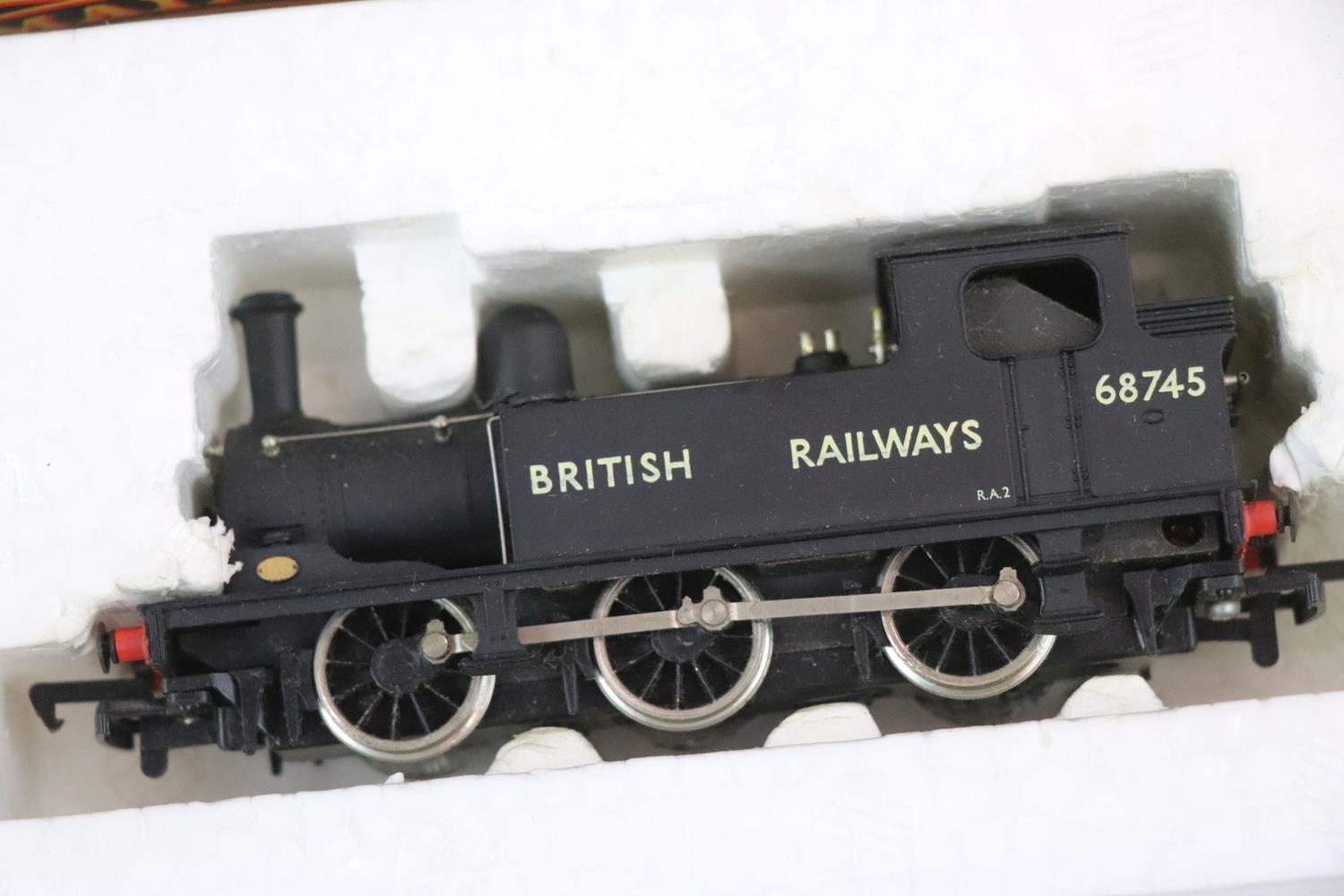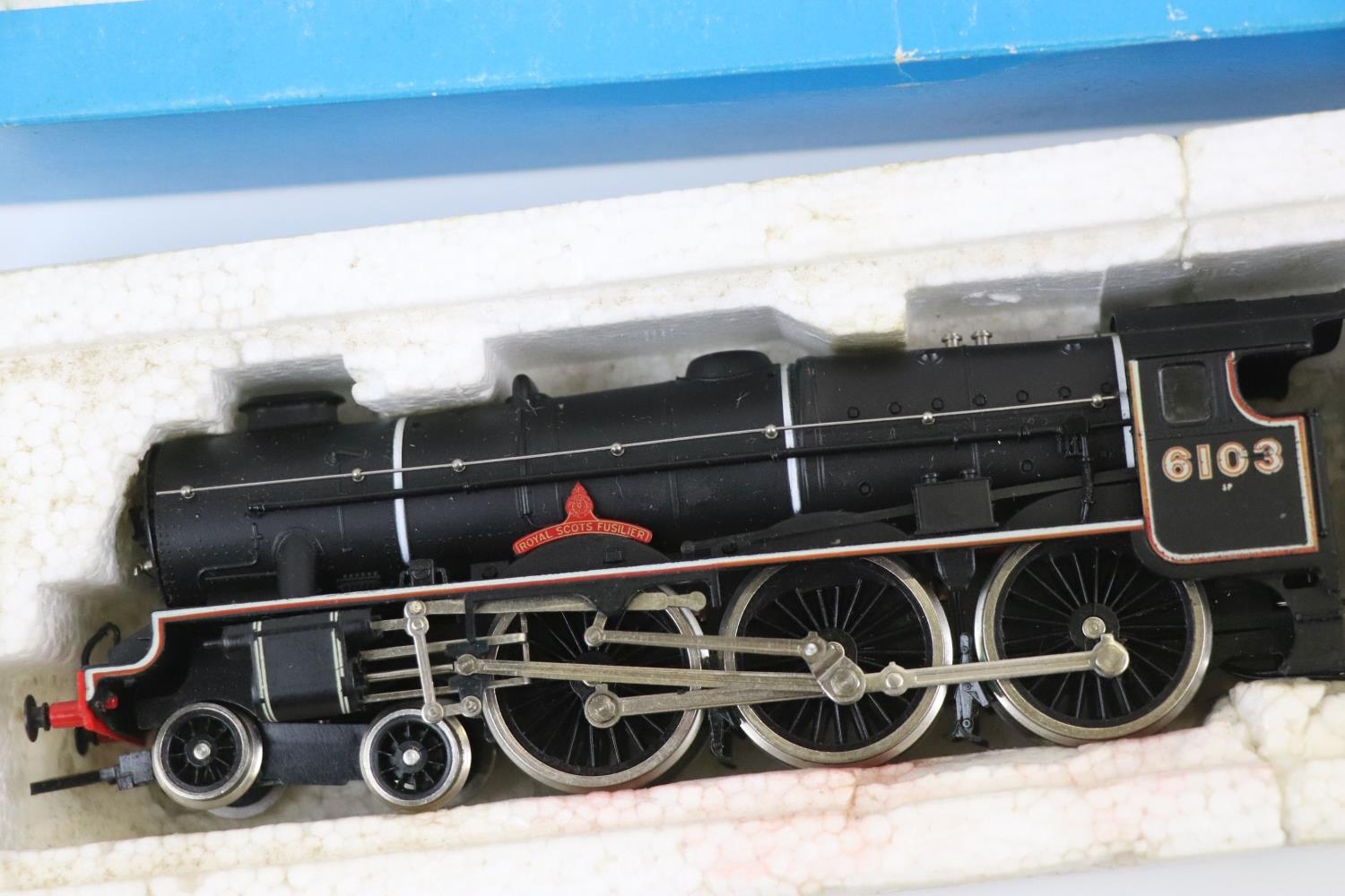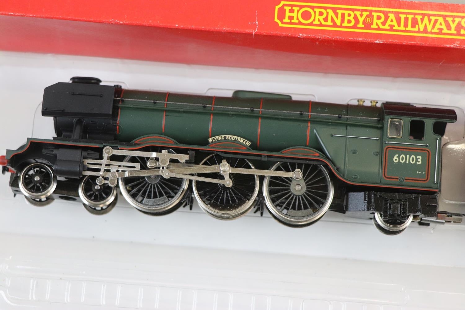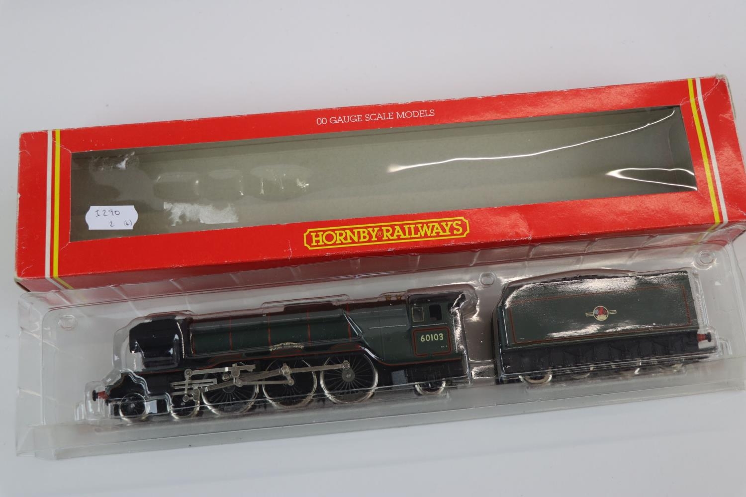 Four boxed OO gauge locomotives to include Hornby R078 BR 4-6-2 Loco Flying Scotsman Class A3, Hornby Top Link R2095B BR 0-4-2T Class 14XX Locomotive 1470, Airfix 54120-0 Royal Scots Fusilier LMS Livery and Mainline 37055 0-6-0T J72 Class Tank Locomotive BR Livery, tatty boxes