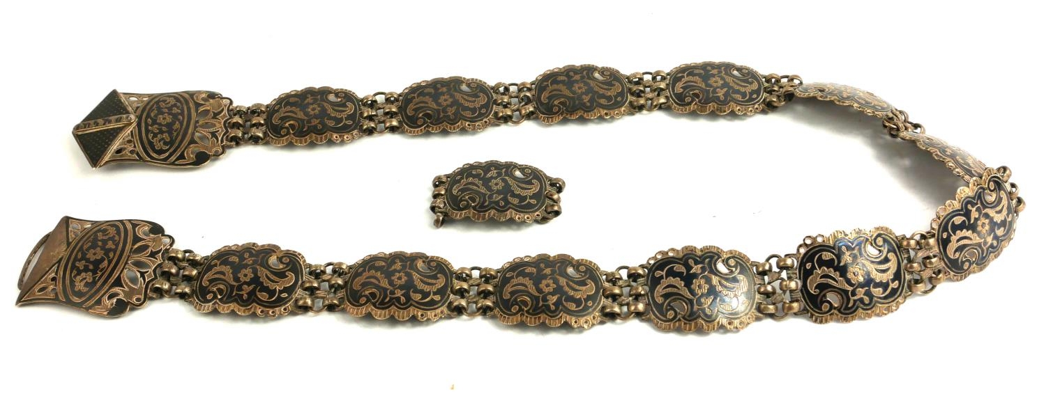 A 19TH CENTURY RUSSIAN SILVER AND NIELLO ENAMEL NURSES BELT