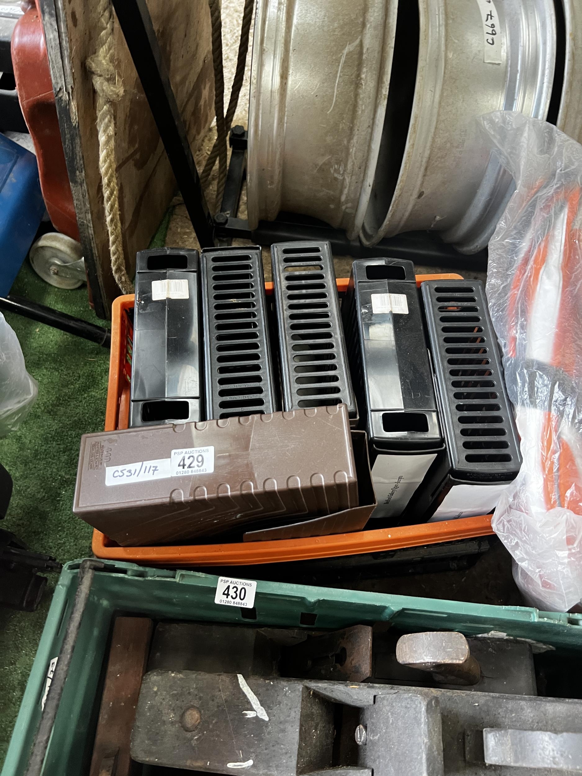 117 crate of plastic box files