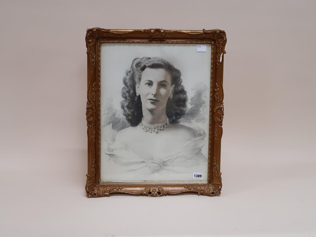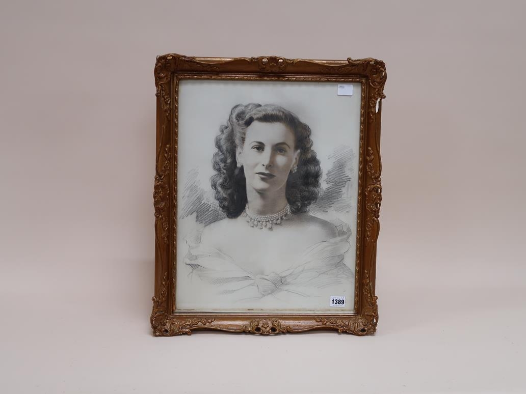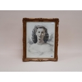 UNSIGNED PORTRAIT OF A LADY, PENCIL AND BLACK CHALK, F/G, 49CM X 38CM
