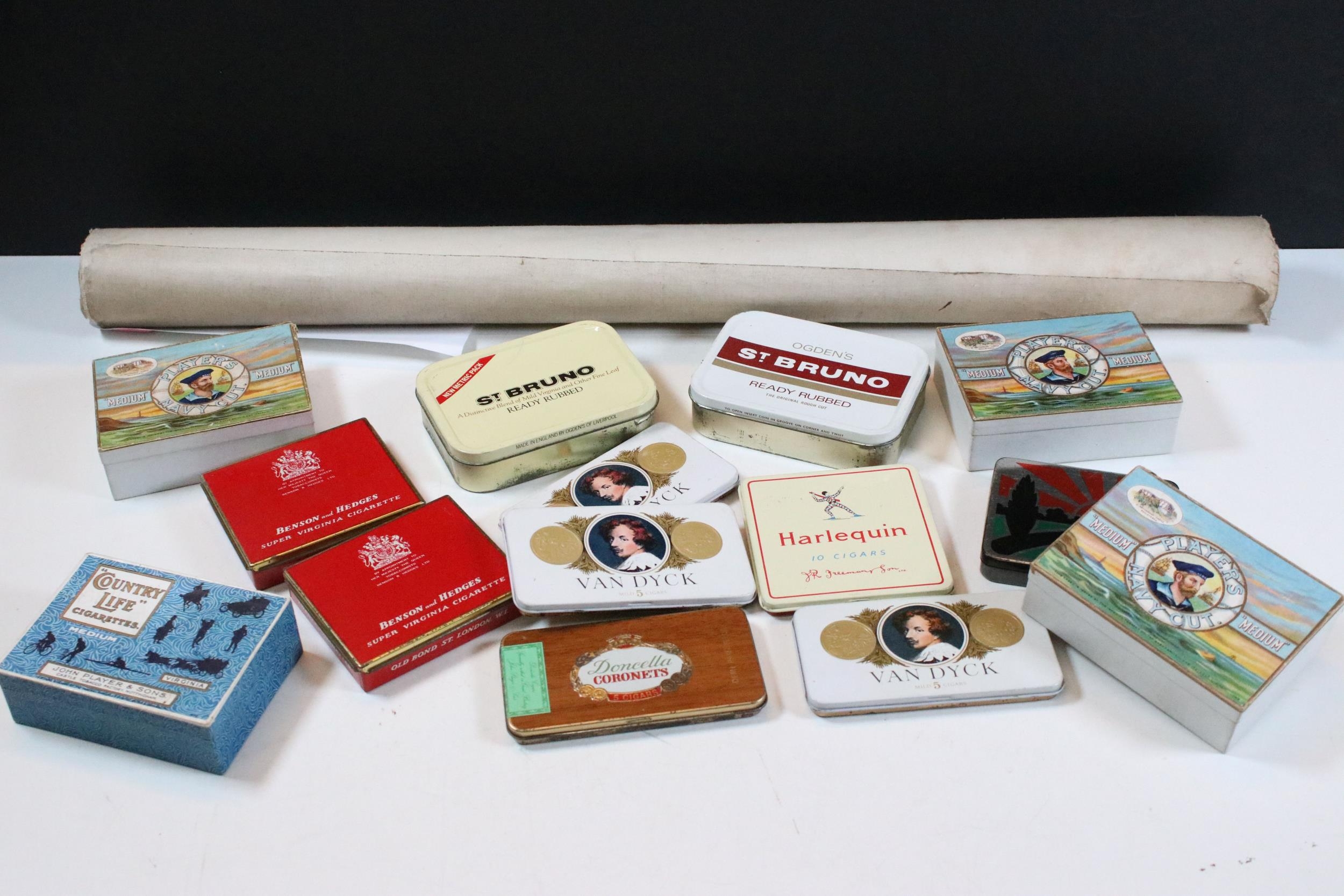Quebec military Defence map on Vellum, together with a quantity of tobacco and cigarette tins