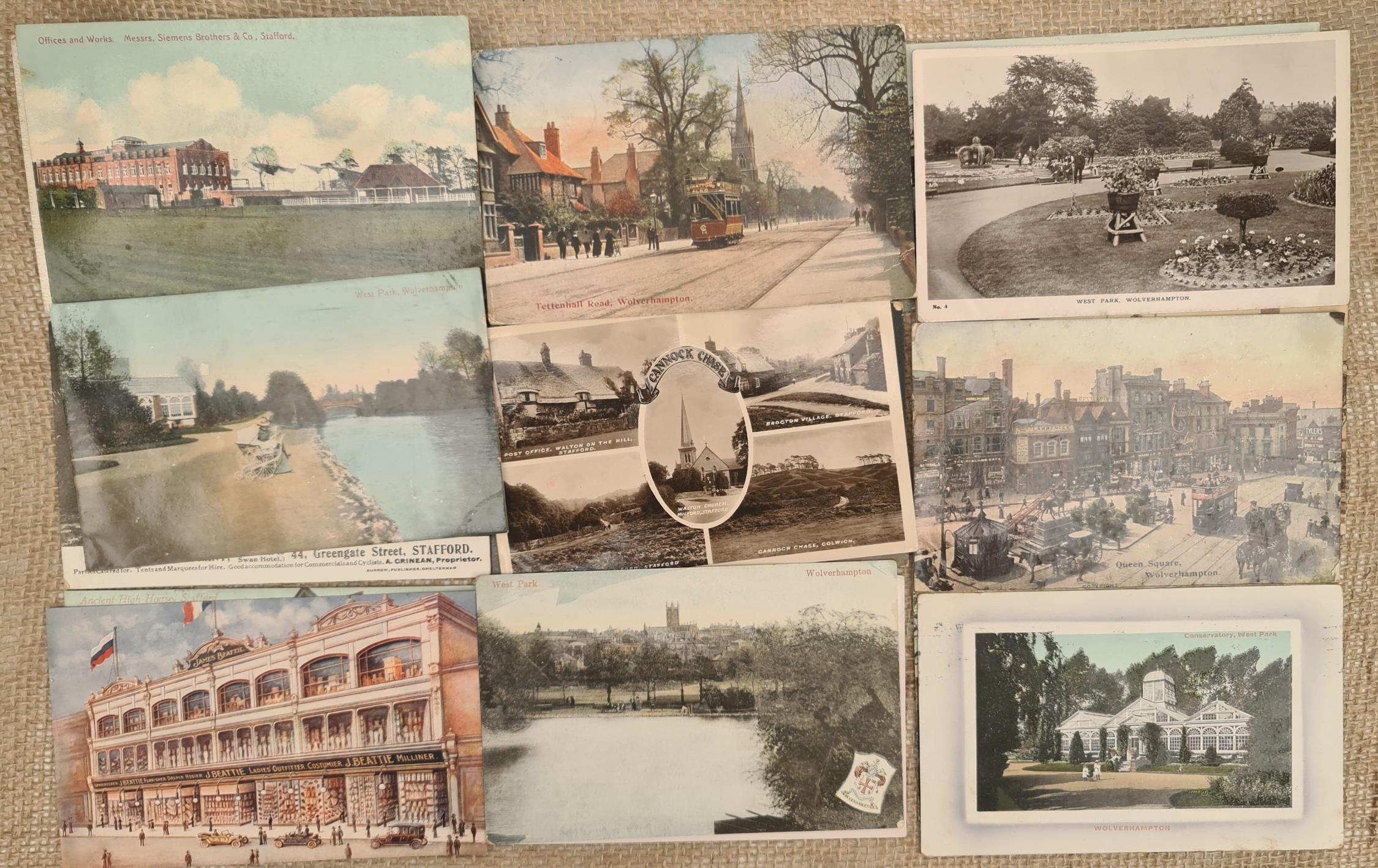 Collectable Postcards 20 x Assorted Postcards Early 20th Century. Includes, Topographical of Stafford, Hednesford and Wolverhampton. Shipping is available. Please ask for a quote before bidding. Where possible we combine shipping costs. Remember, if you are the highest bidder above reserve on this Lot you have bought the item and are legally responsible for the item. Viewing is recommended in either person or via video link. Contact us to arrange. #FEB2405