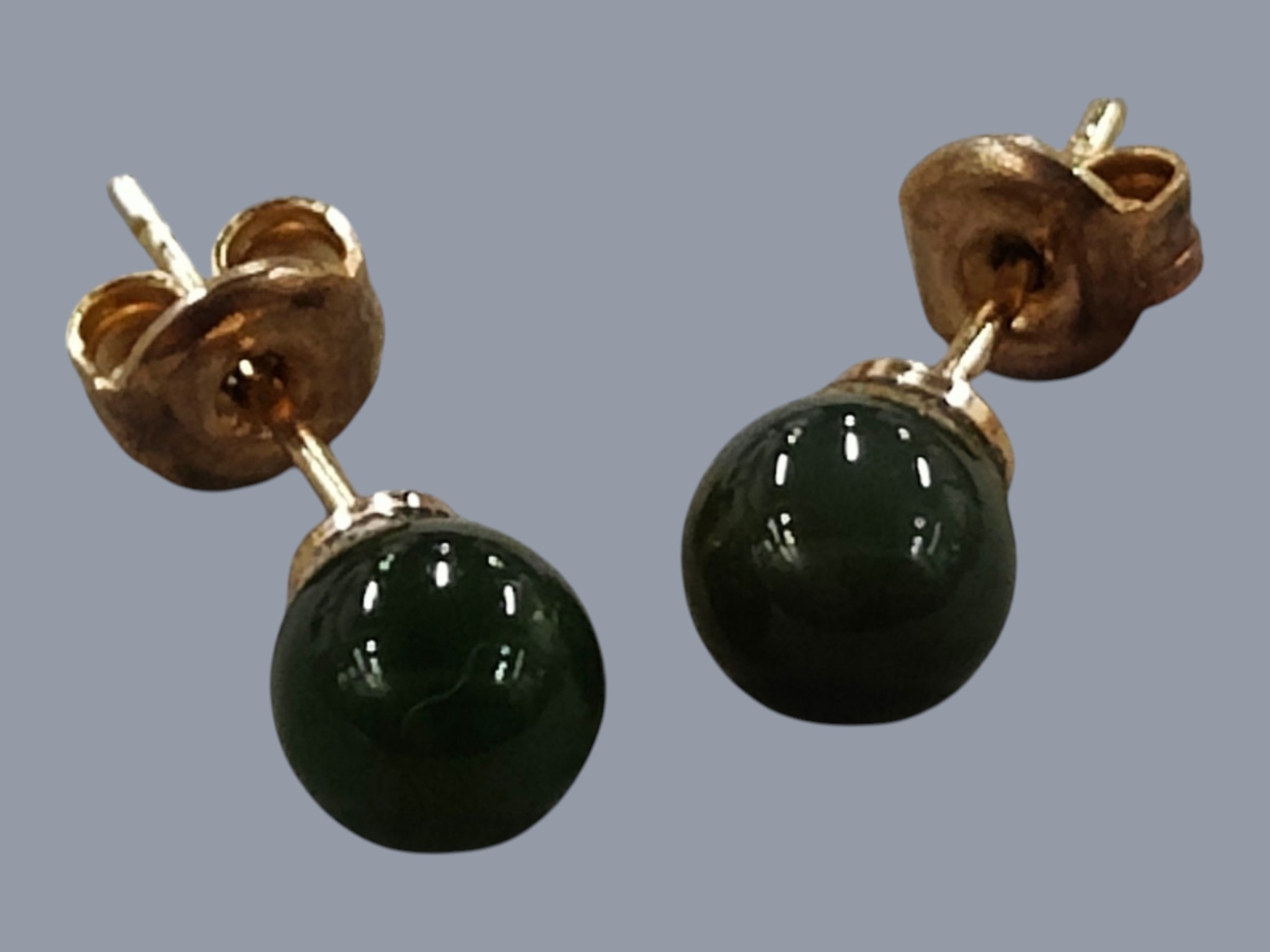 PAIR OF 9 CARAT GOLD JADE SET EARRINGS