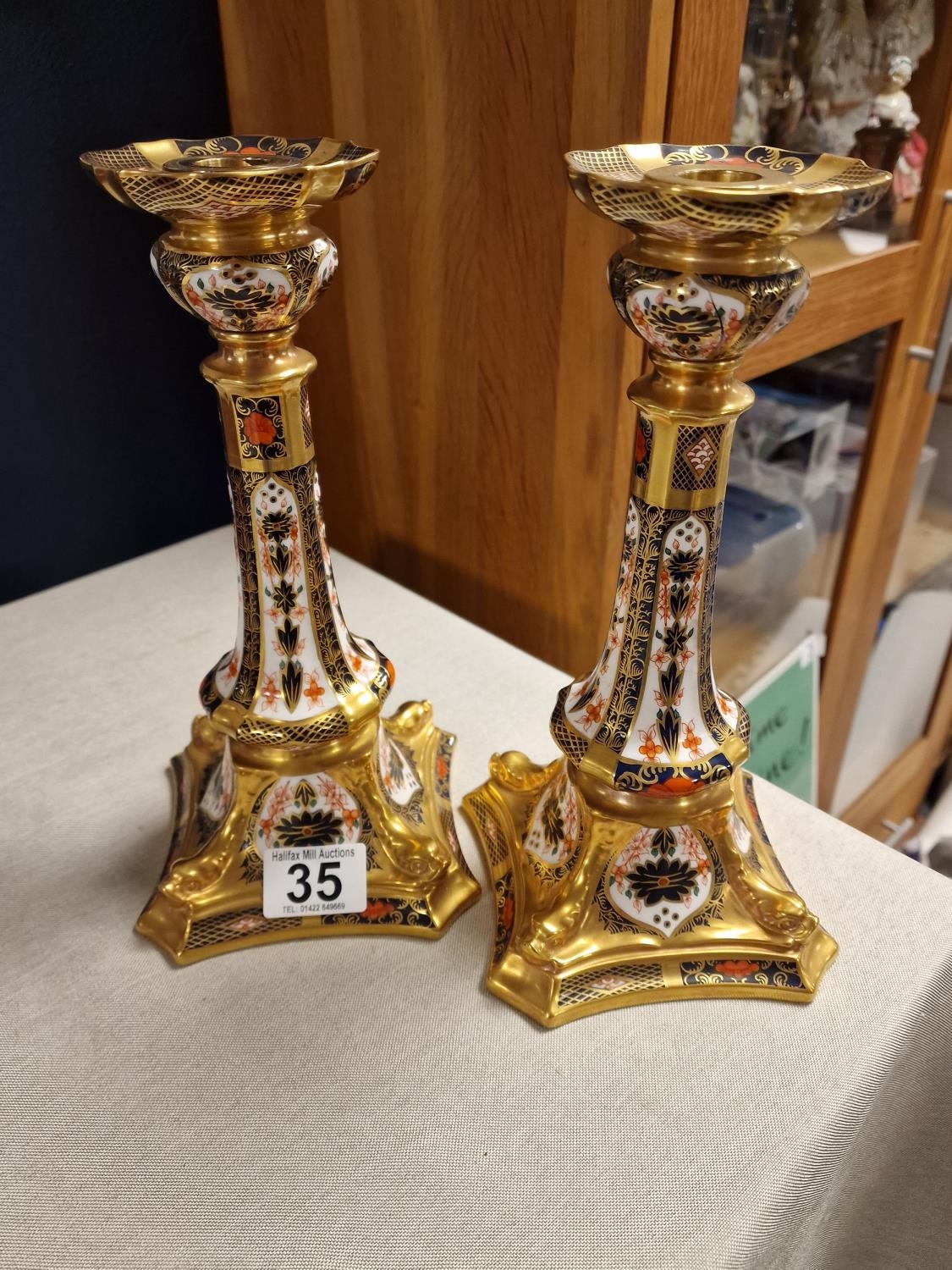 Pair of 1128 Royal Crown Derby Candlesticks - approx 10 inches high