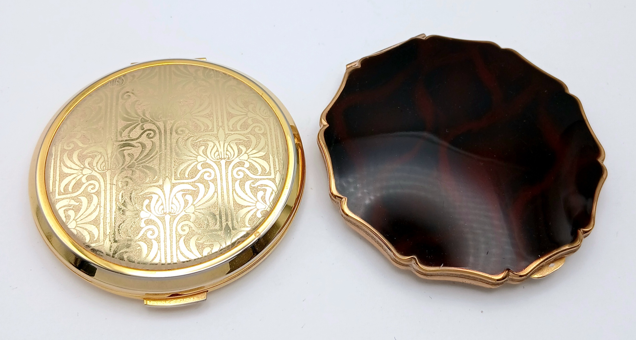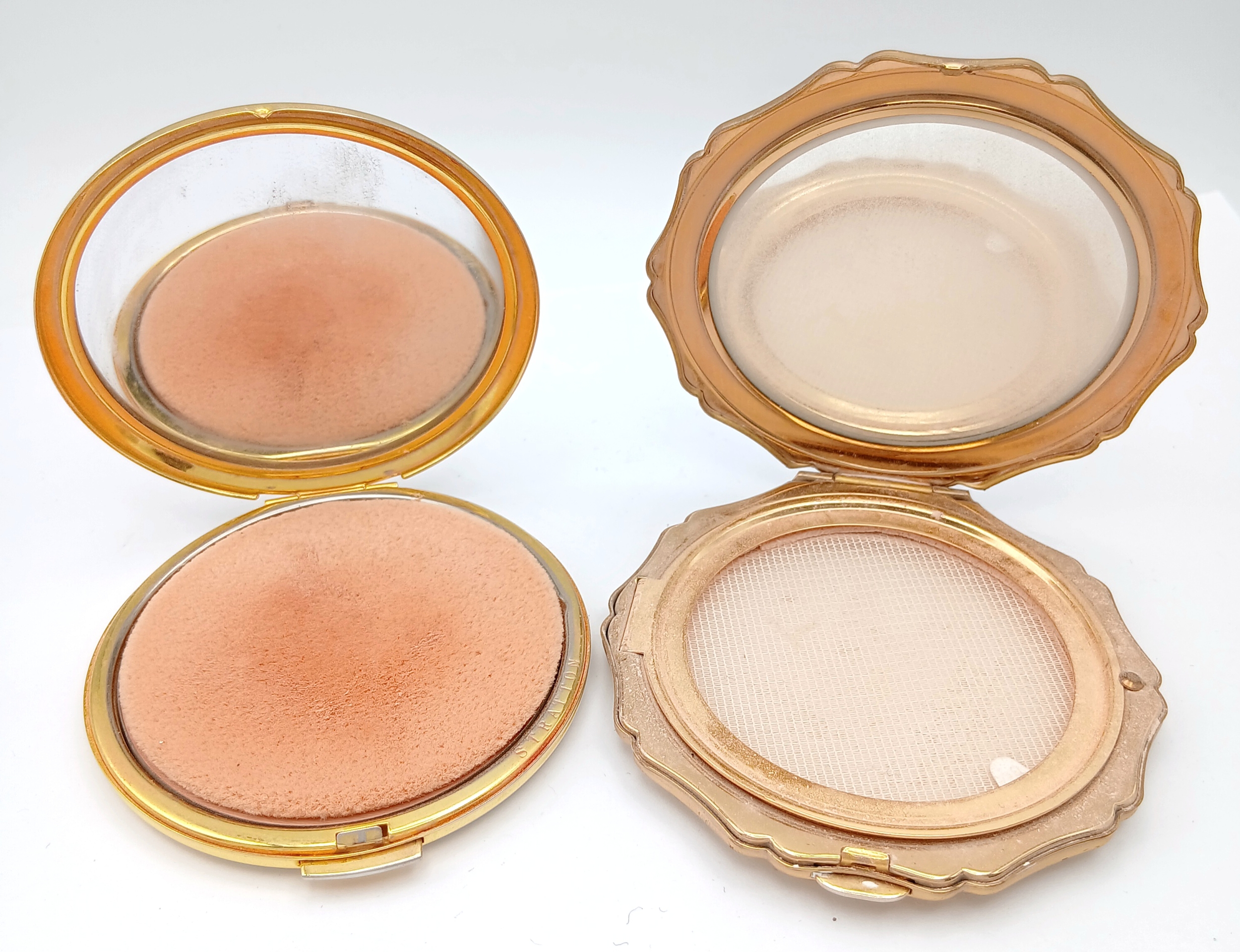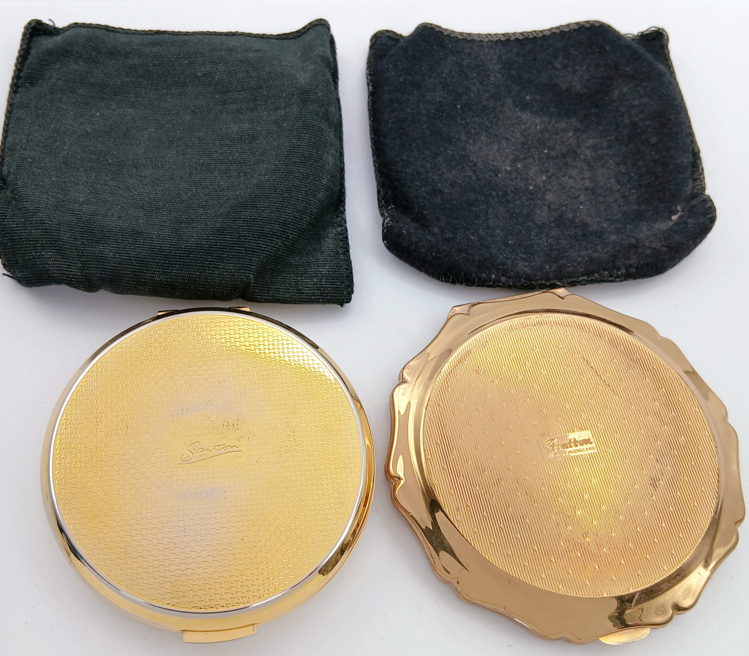 2 x VINTAGE STRATTON POWDER COMPACTS. Beautiful condition with mirrors. Complete with pouches. Excellent condition, please see pictures.