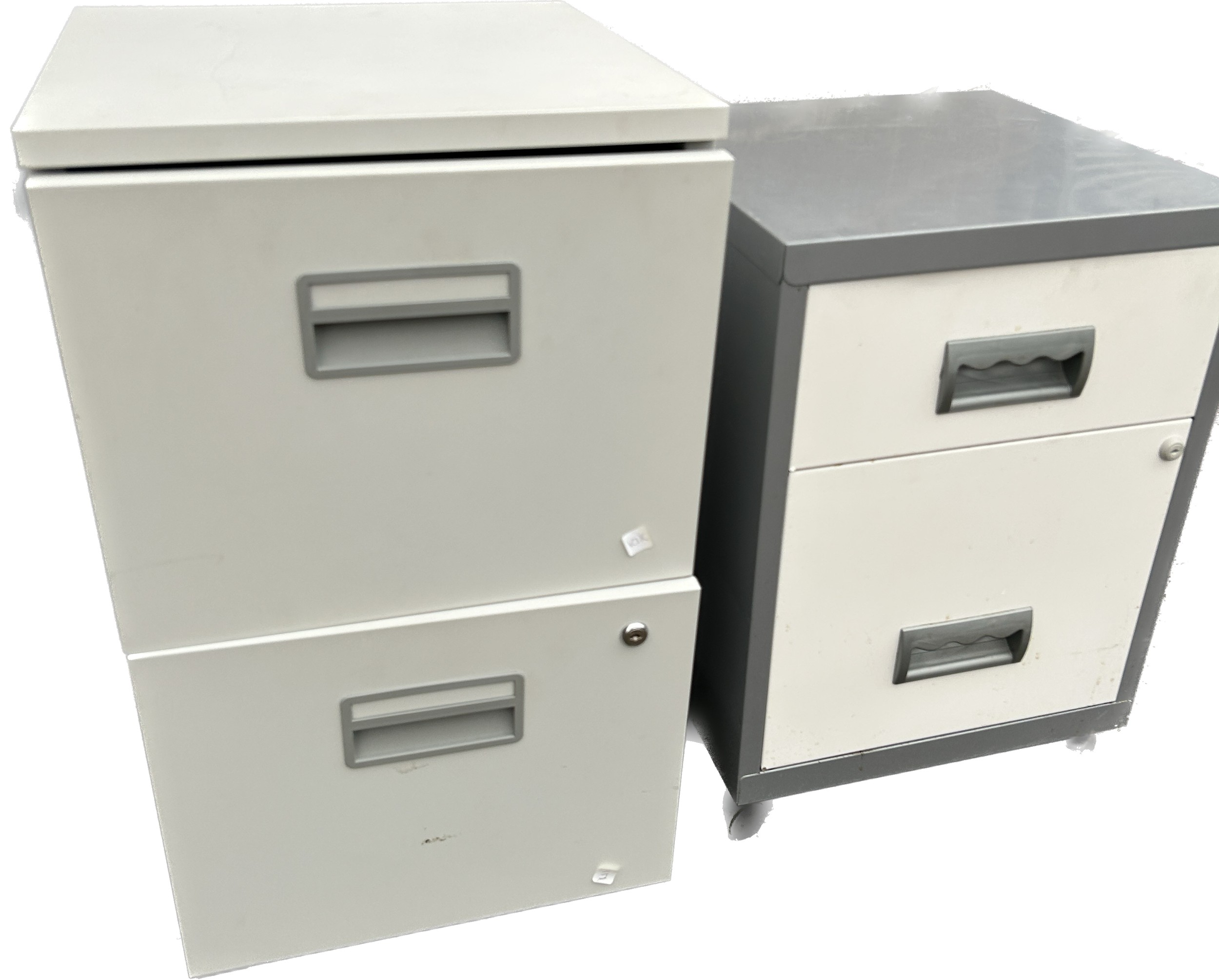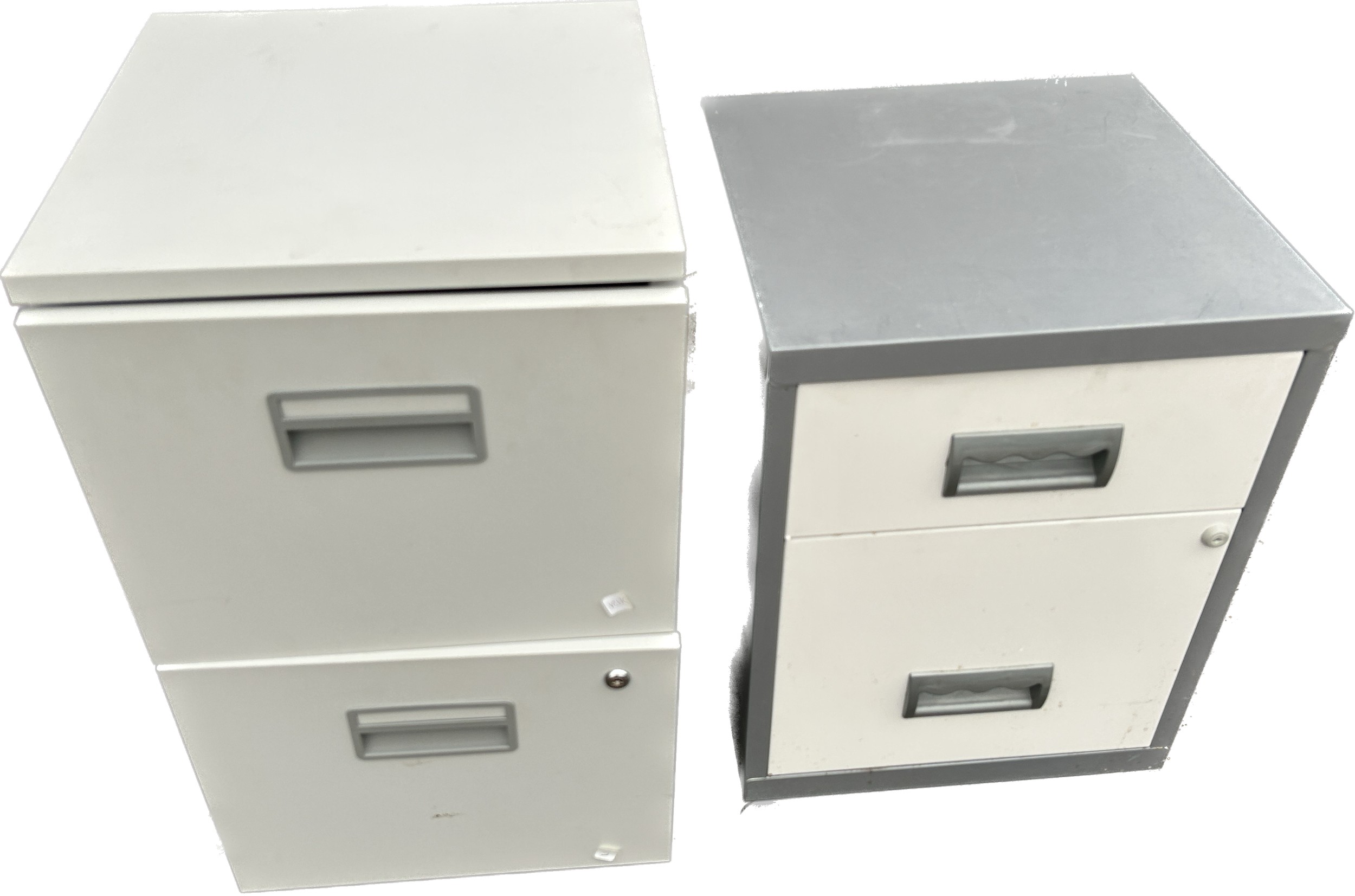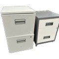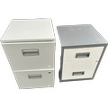 2, 2 drawer low metal filing cabinets, approximate measurements: Height 26.5 inches, Width 15.5 inches, Width 16 inches