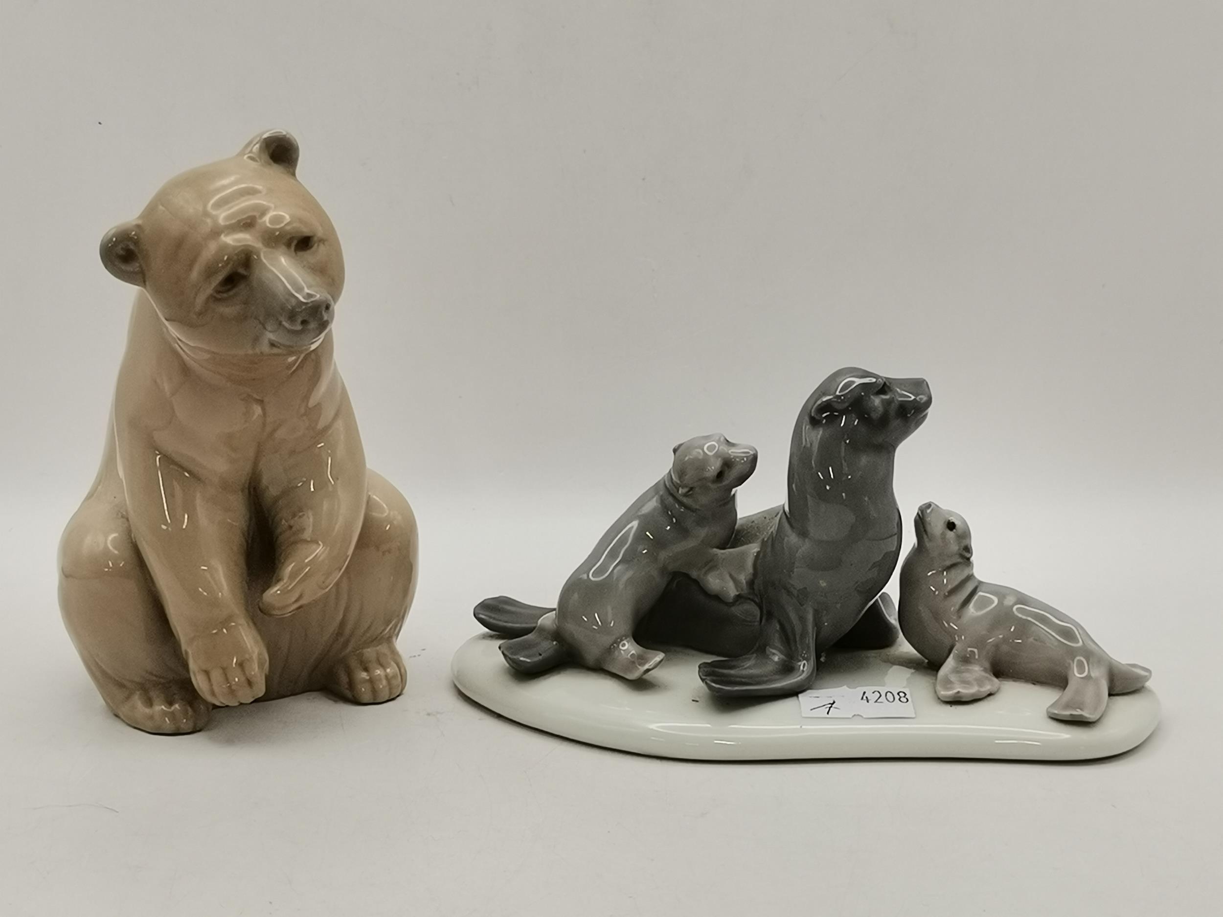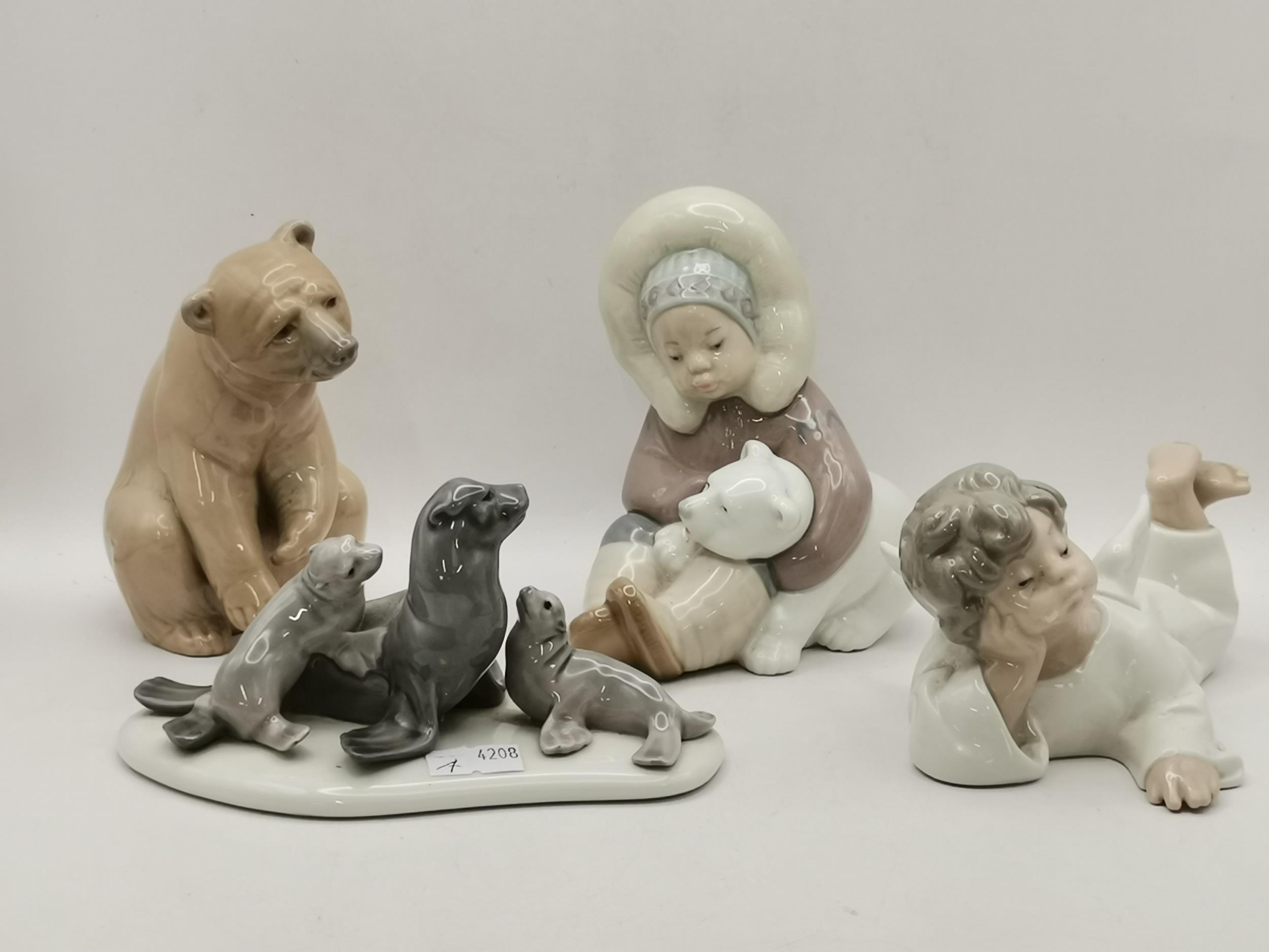 A collection of Lladro figurines including Bear, Sea Lions, Eskimo and angel (A)