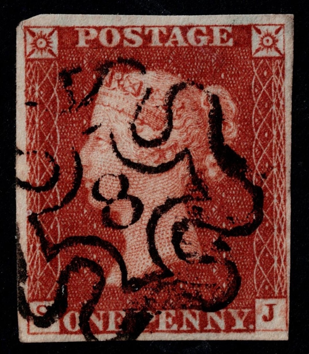 GB 1841 1d red plate 31 SJ 4m vfu crisp upright London number 8 in cross, sg8, Cat. £160