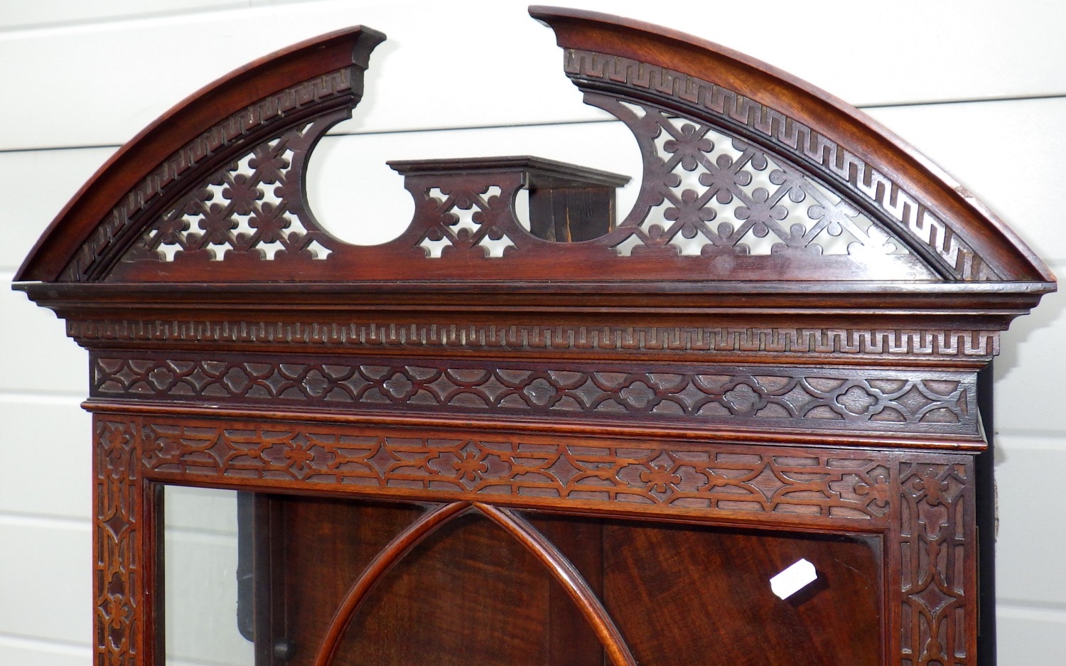 An Edwardian Chippendale style fretwork decorated narrow cabinet on stand, 190cm tall, 61cm wide