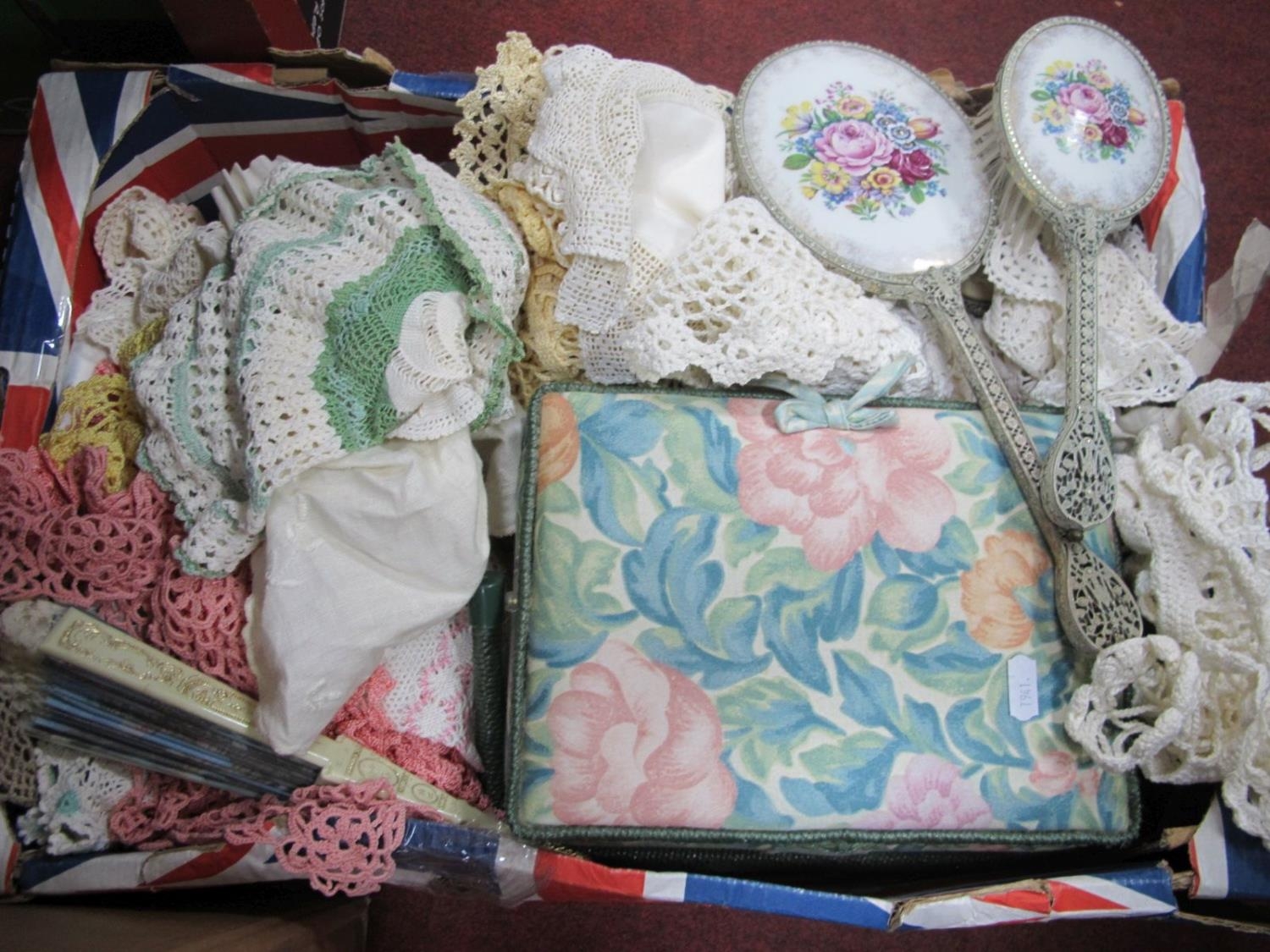 Needlework Accessories in Box, dressing table ware, etc:- On...