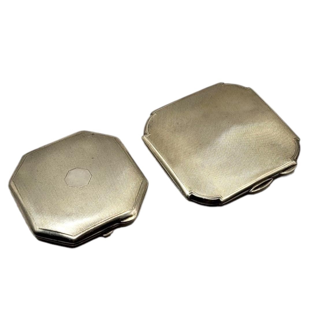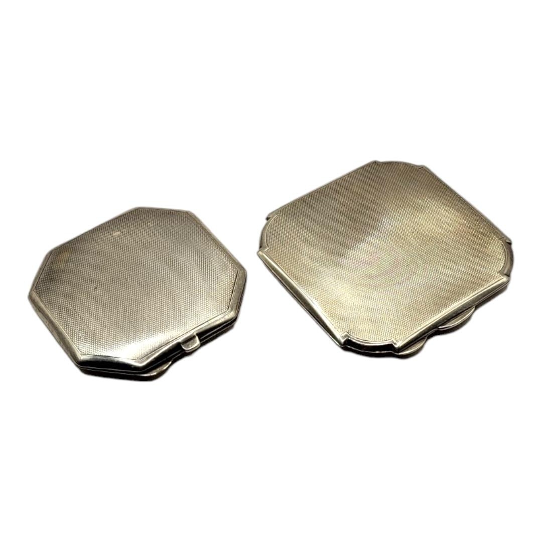 WILLIAM NEALE & SON LTD, AN ART DECO SILVER MIRRORED COMPACT, HALLMARKED BIRMINGHAM, 1939, TOGETHER WITH ANOTHER ART DECO SILVER MIRRORED COMPACT, HALLMARKED TURNER & SIMPSON LTD, BIRMINGHAM, 1936