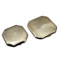 Both being square form with chamfered corners, double sided engine turned decoration.