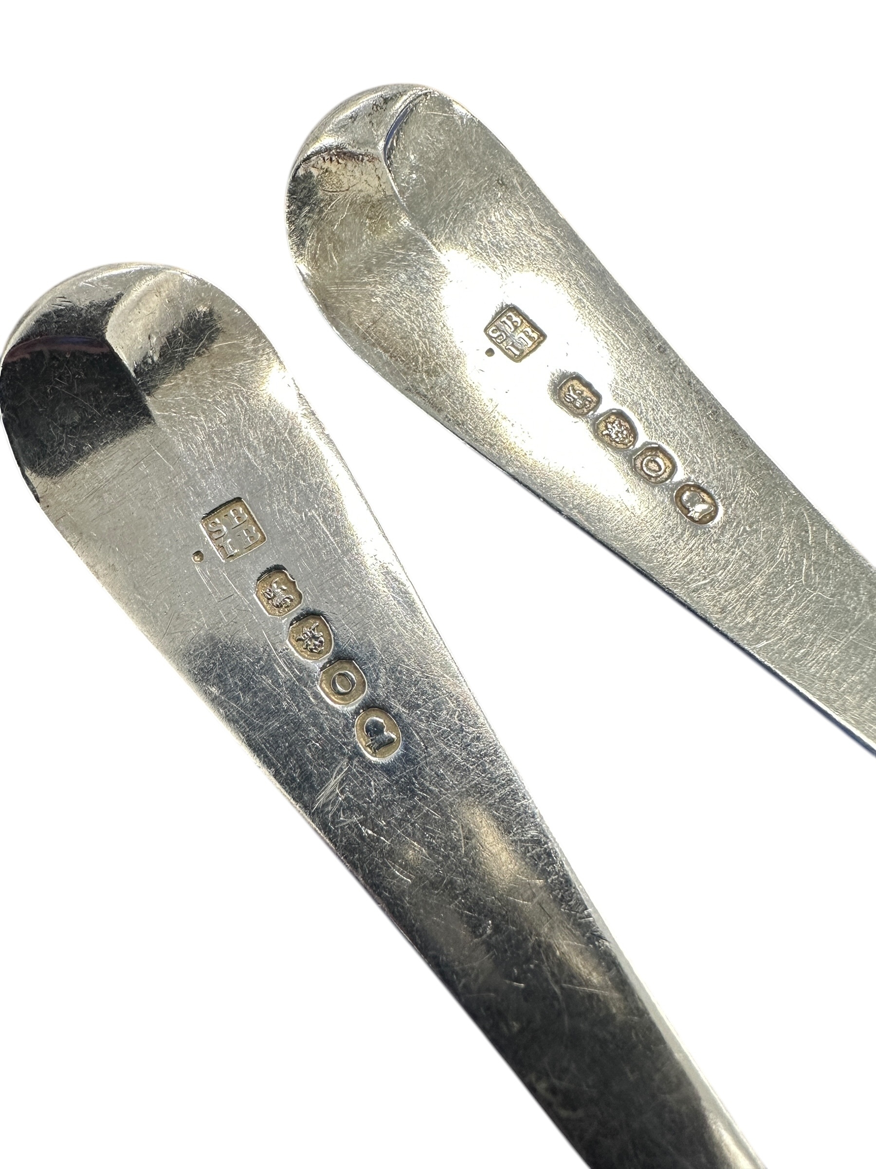 Pair of Georgian Hallmarked Silver Serving Spoons. Lopndon 1809 by Sarah and John William Blake. 111.37g