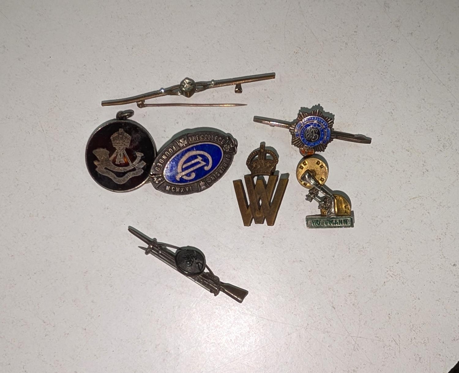 A Womens Volunteer badge, no 50228, a College of Nursing silver badge no 13381, 5 others.