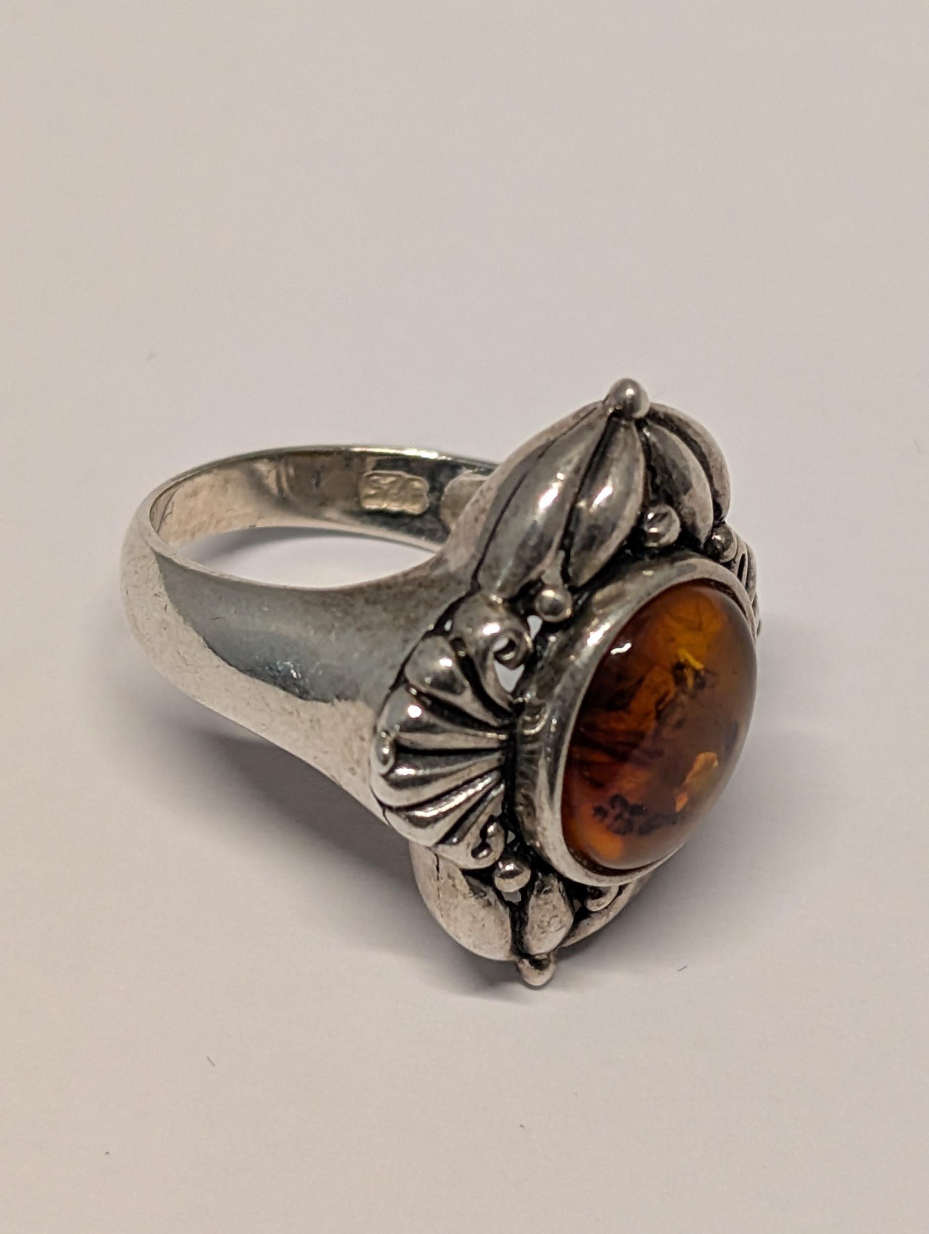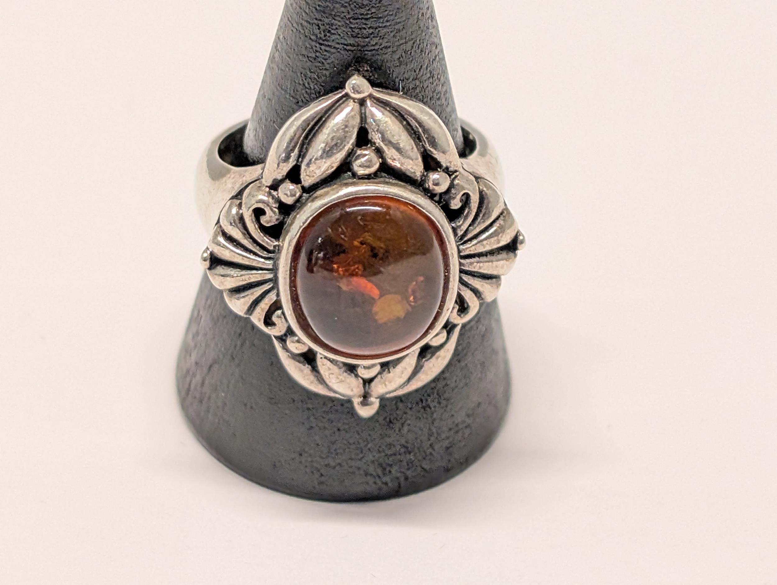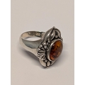 A Vintage Sterling Silver 925 Baltic Amber Cabochon Ring