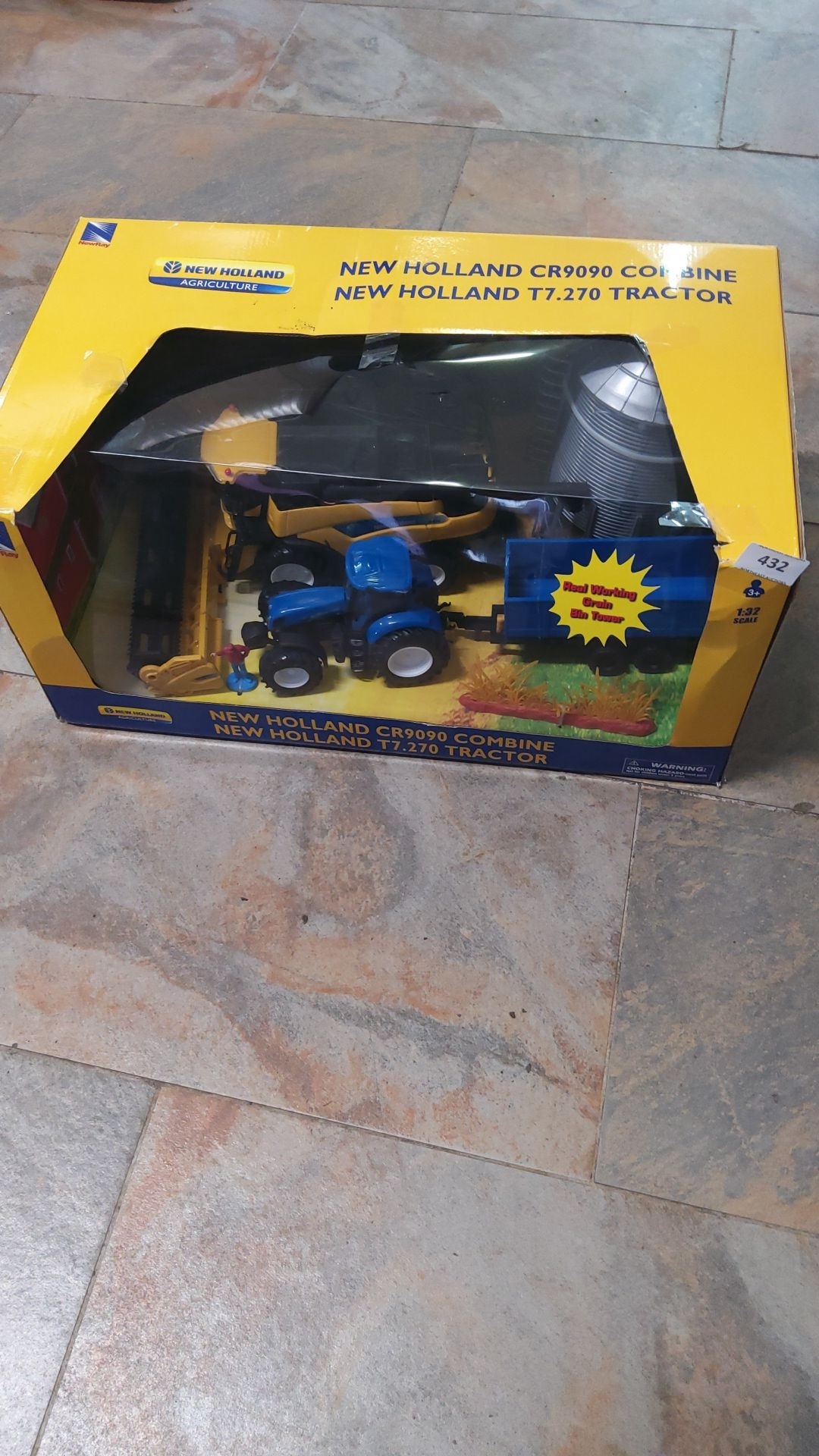 New Holland CR9090 Combine and T7.270 Tractor set, 1:32 scale. Boxed collectible.