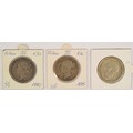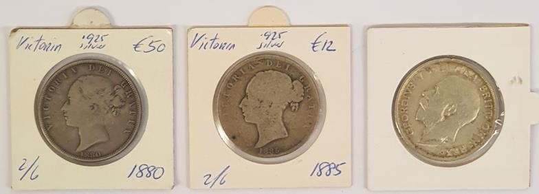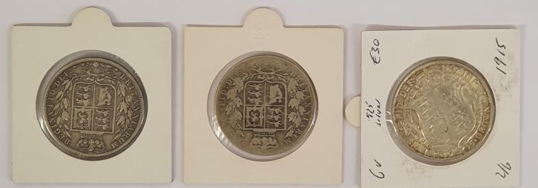 GB - 1880 Silver Half Crown, Victoria Young Head; an 1885 example and a 1915 George V Half Crown (3)