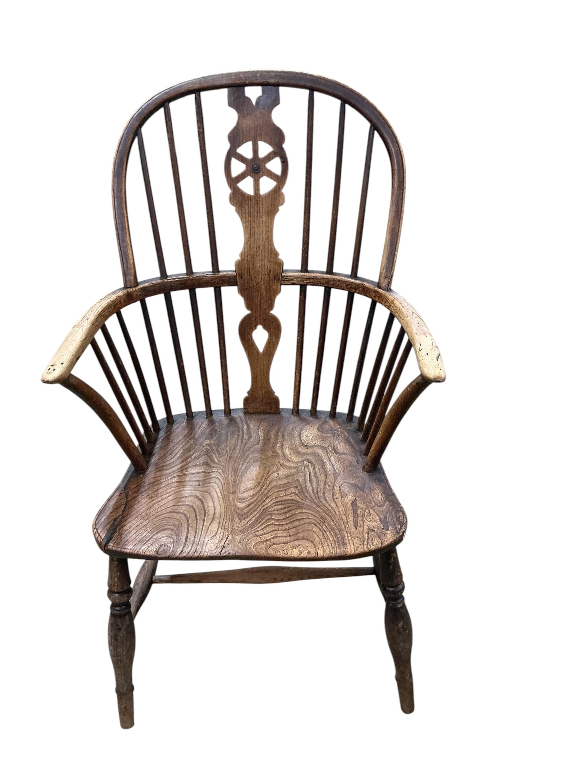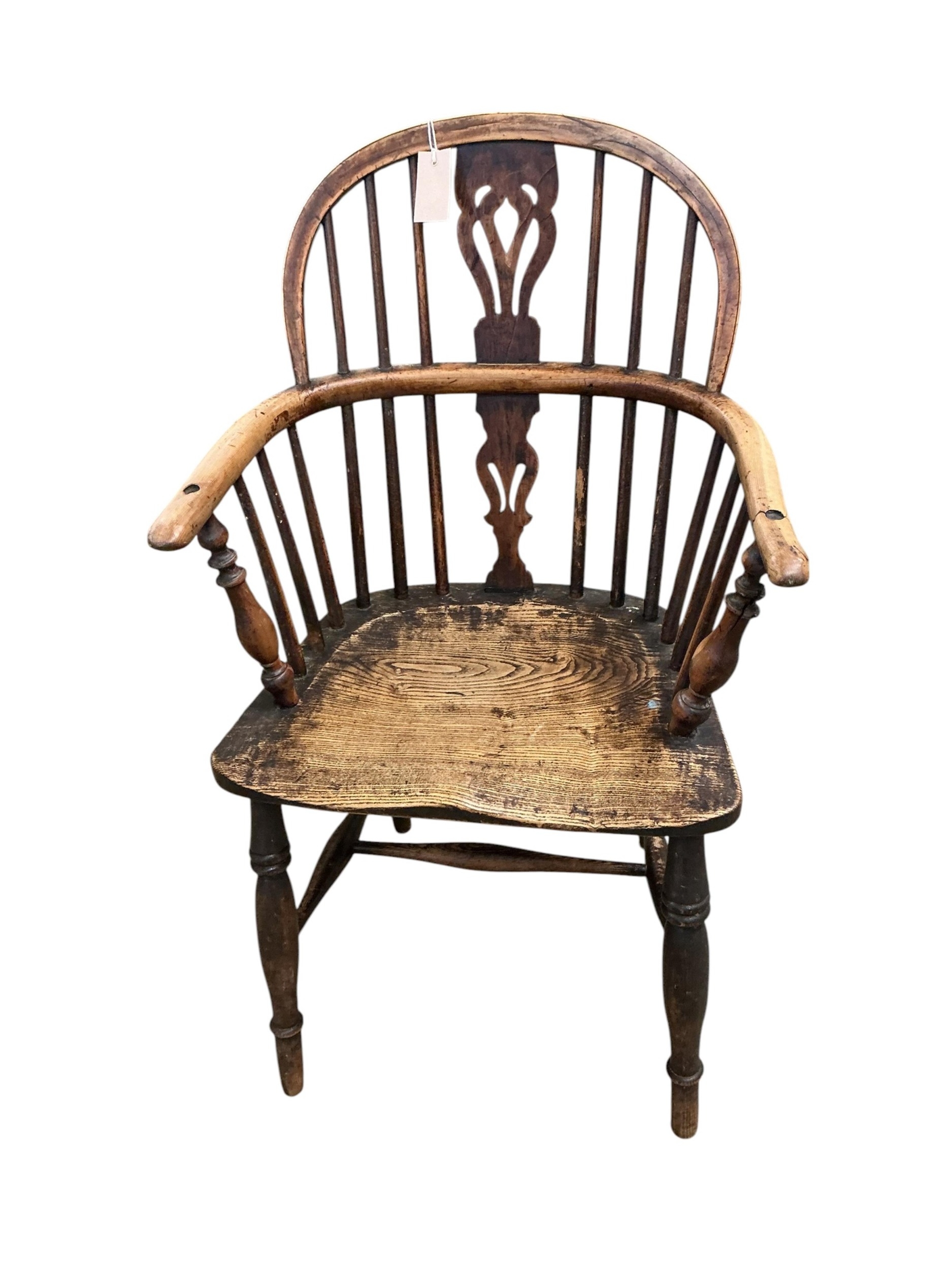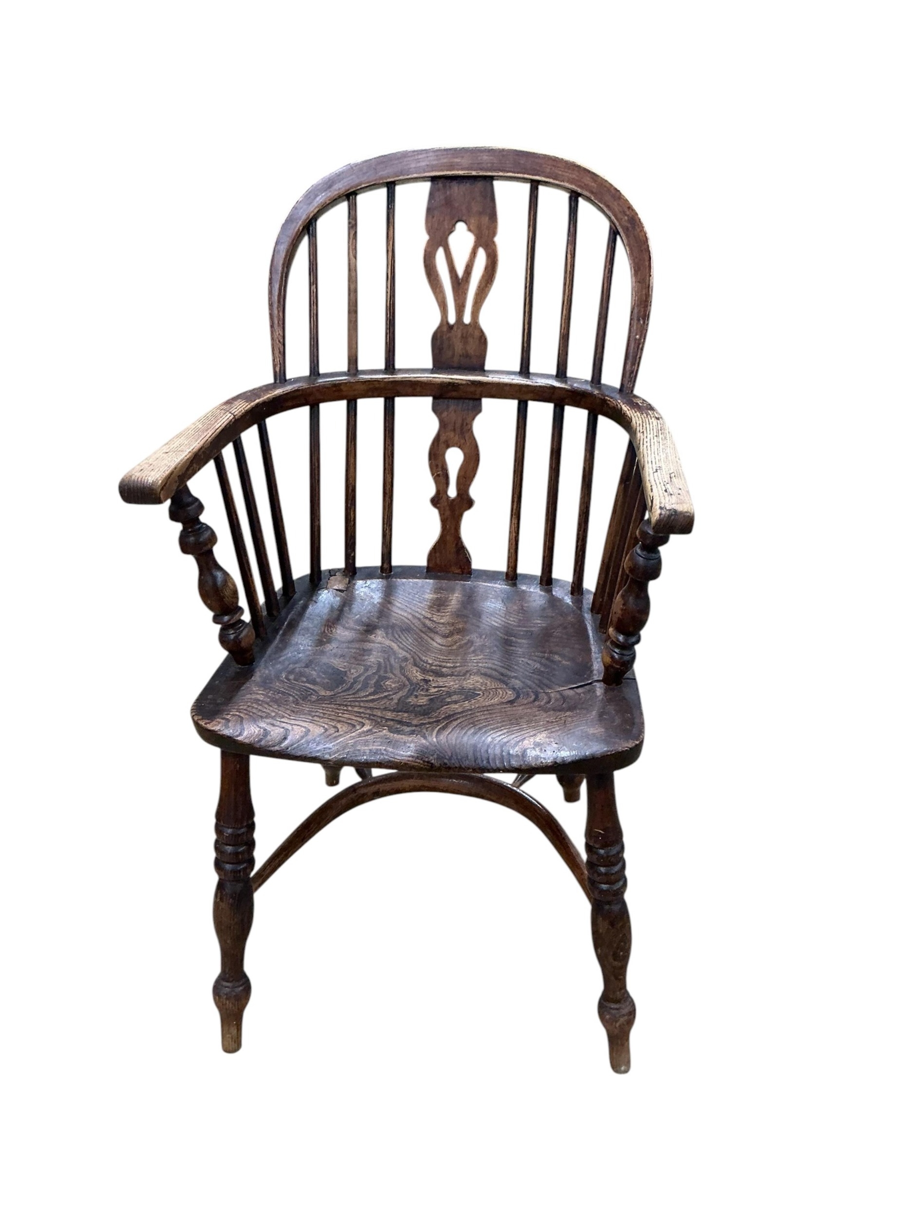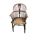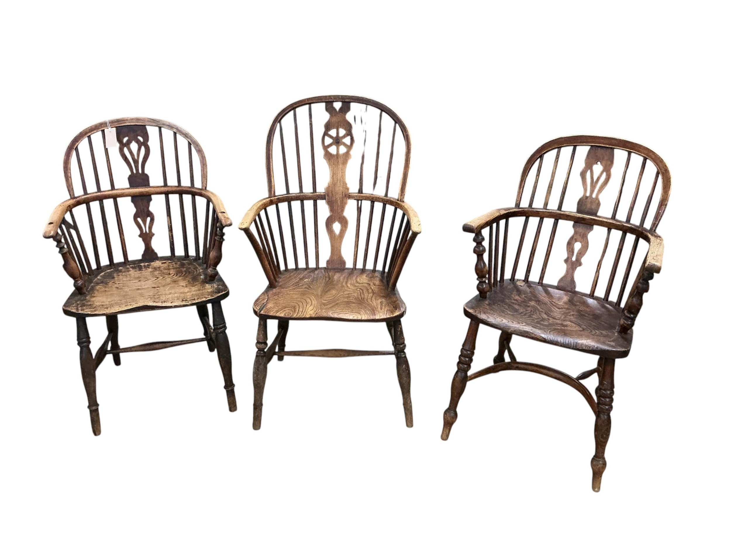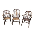 Three 19th century windsor armchairs, largest width 58cm, depth 45cm, height 102cm