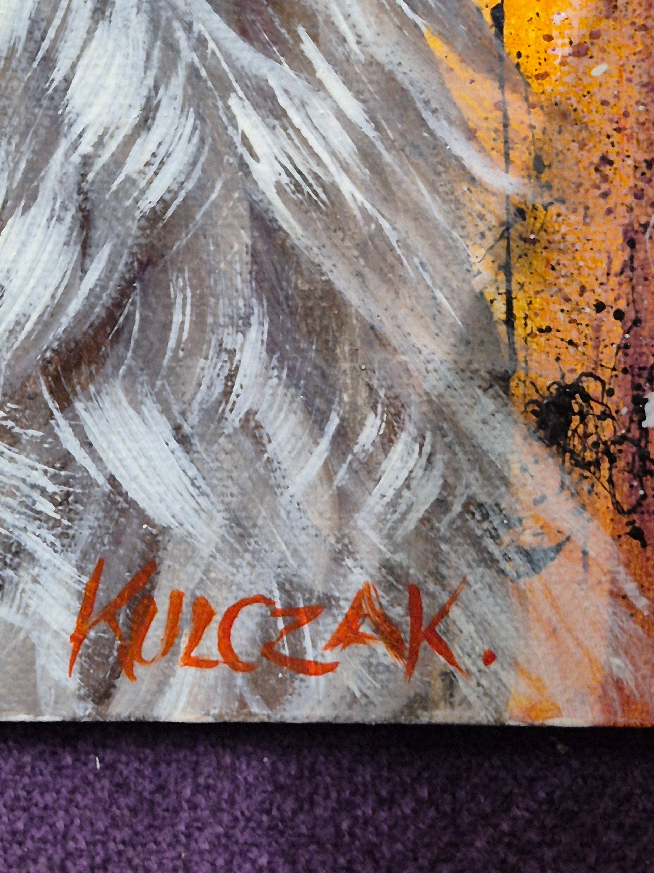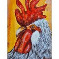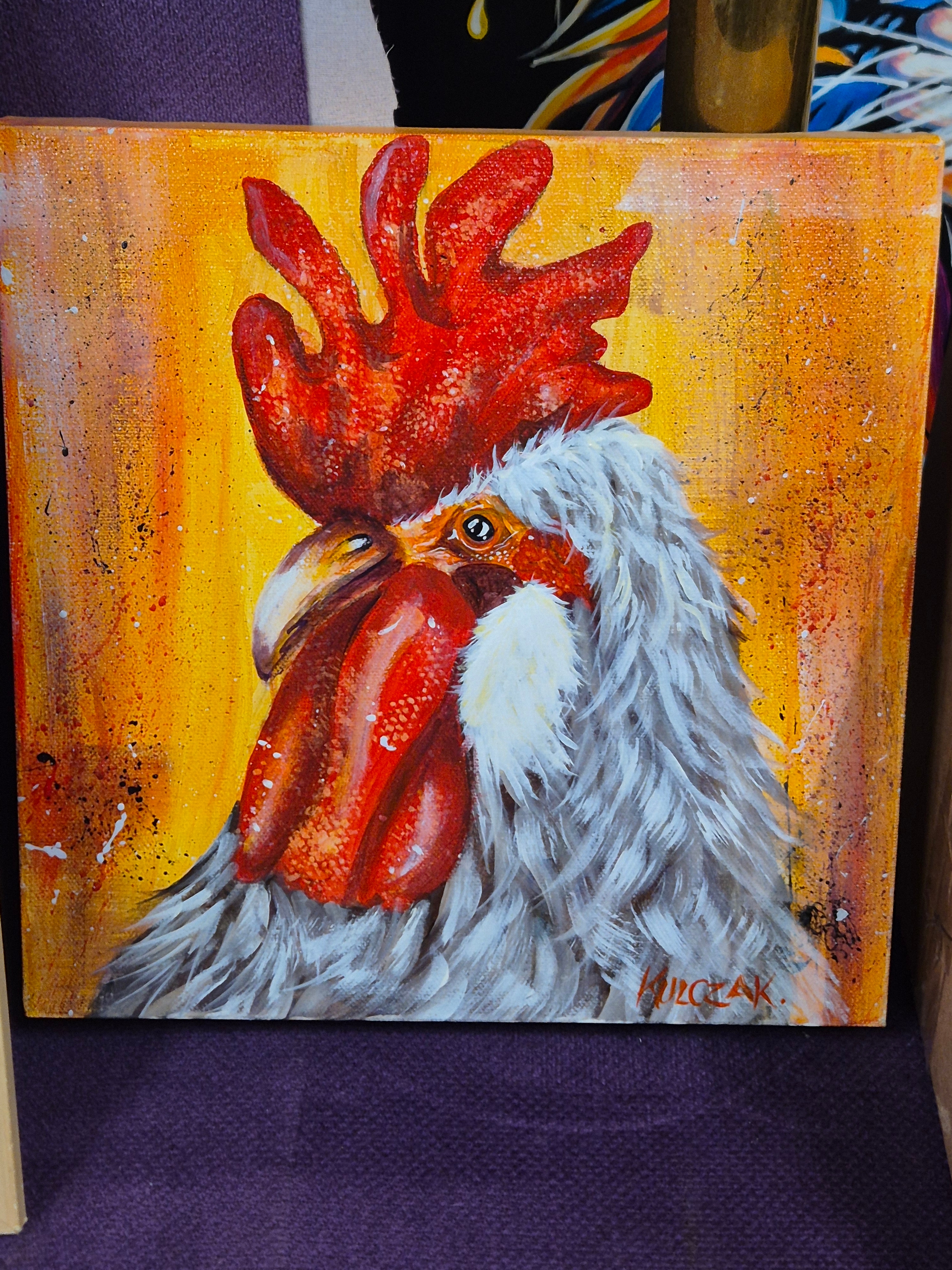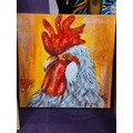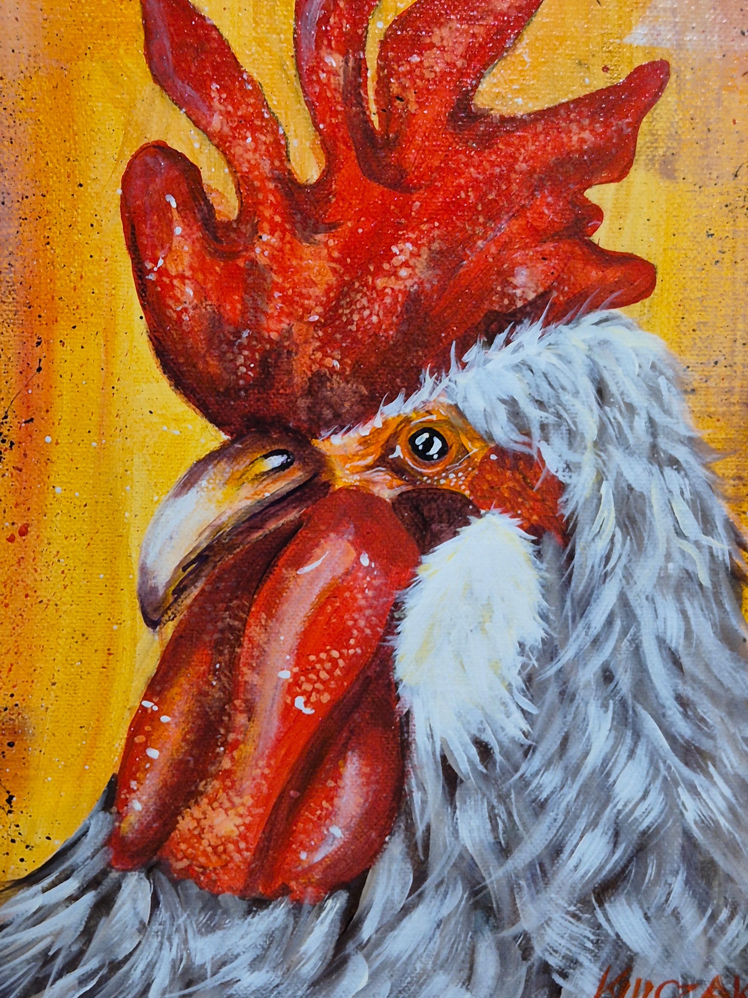 Original acrylic painting of Roosters Head on canvas by Kulczak 12" x 12"
