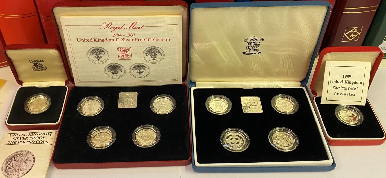 A group of £1 silver proof coins, 1983-1987, 1989 & 1994-1997, in four cases (4)