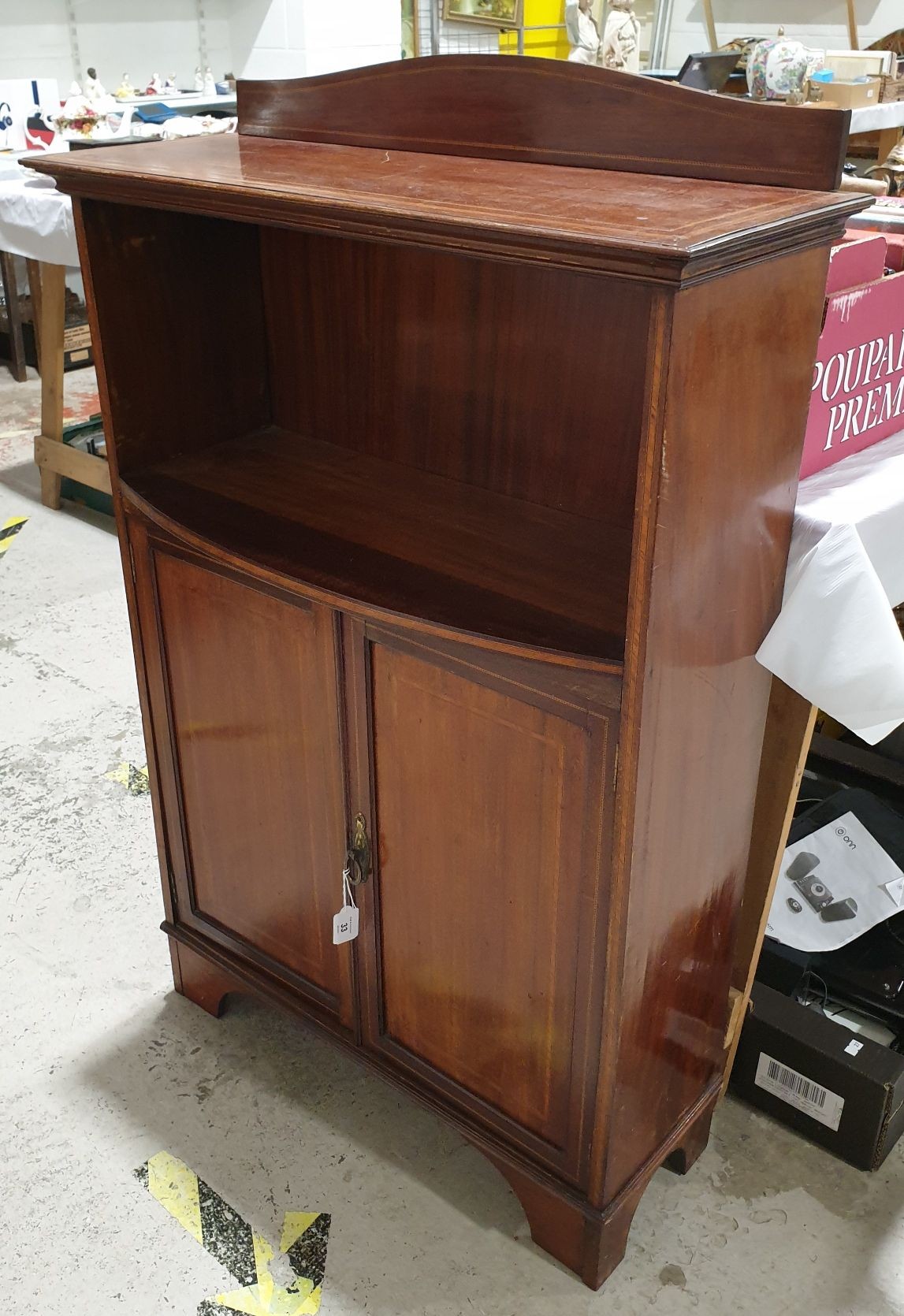 A vintage mahogany bookcase/cupboard, height 43.5". No in house shipping. Please arrange your own collection or packing and shipping.