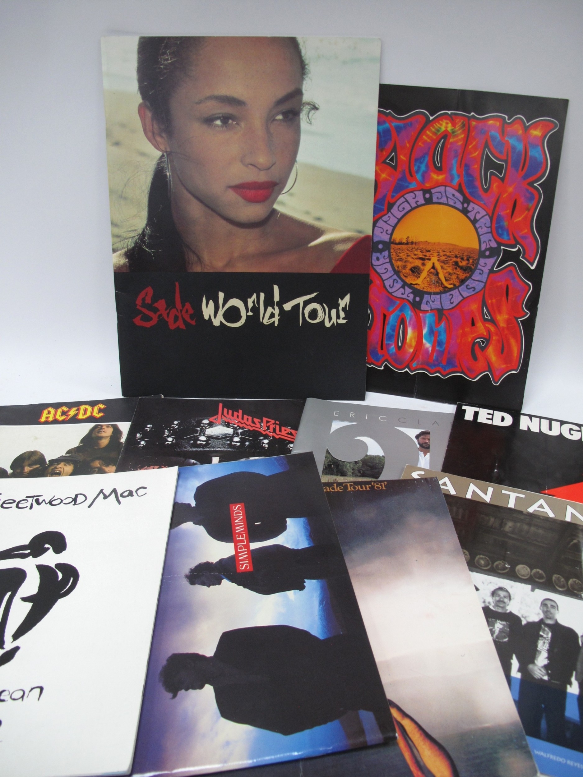 Music Tour Programmes - Judas Priest, AC/DC, Fleetwood Mac, Simple Minds, Thin Lizzy, Renegade Tour 81 + poster, Clapton, Black Crowes, Ted Nugent and Sade.