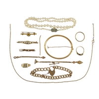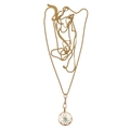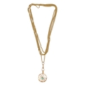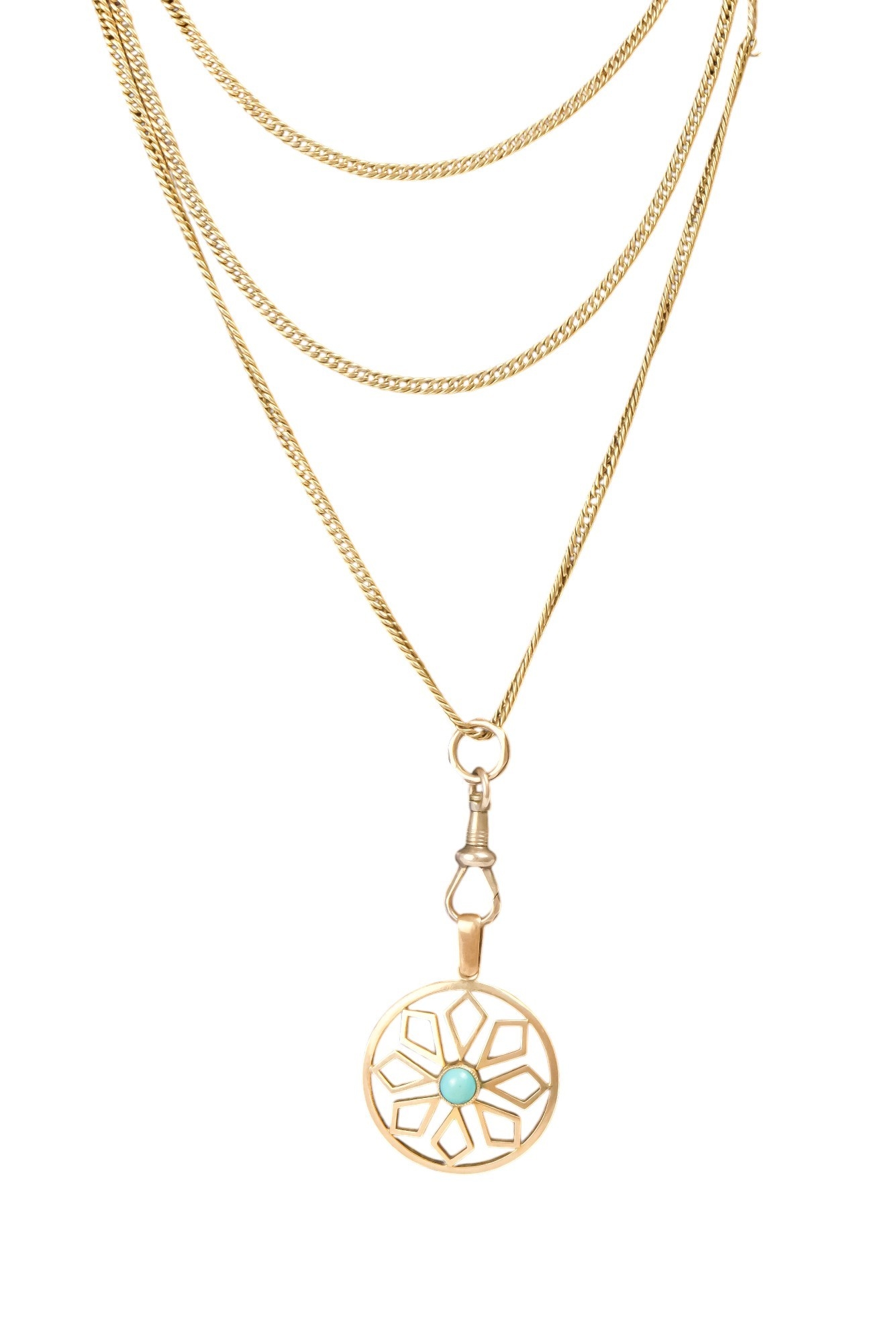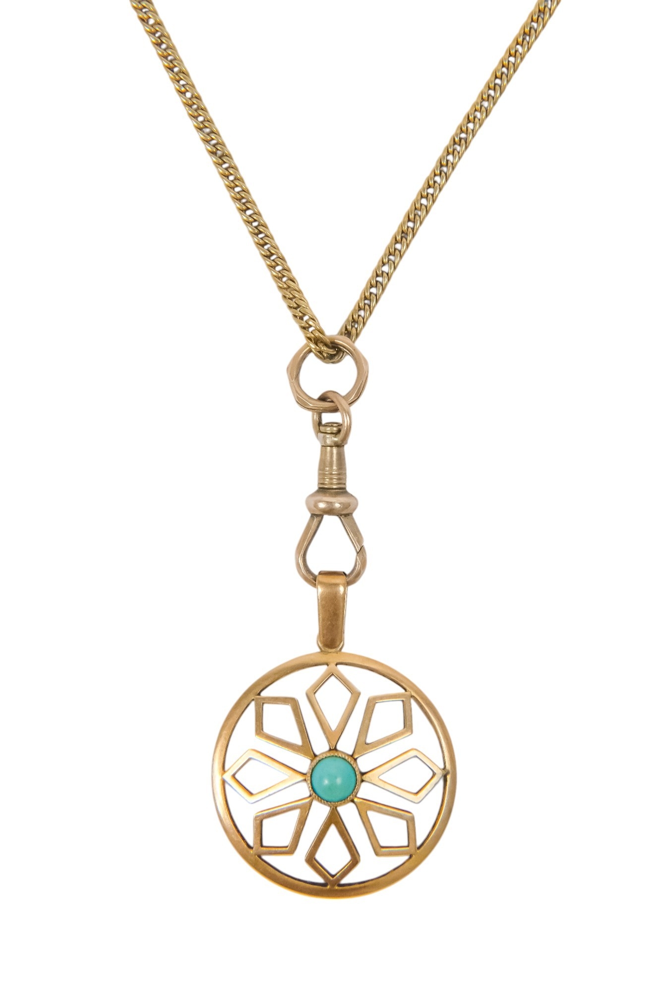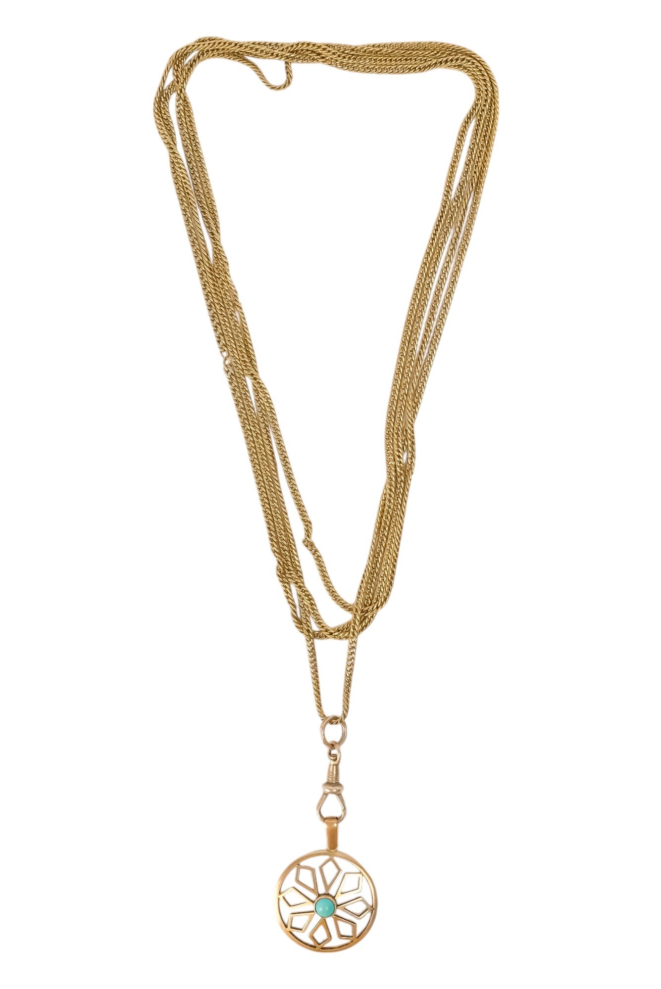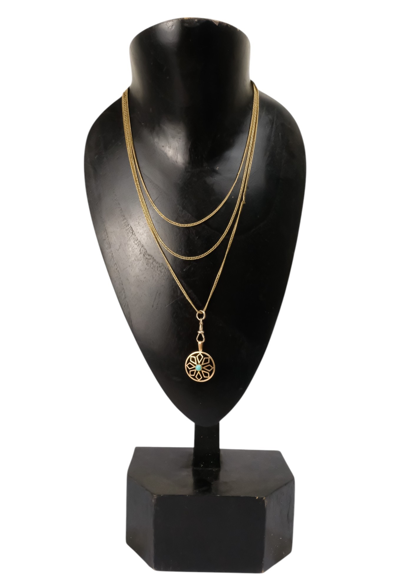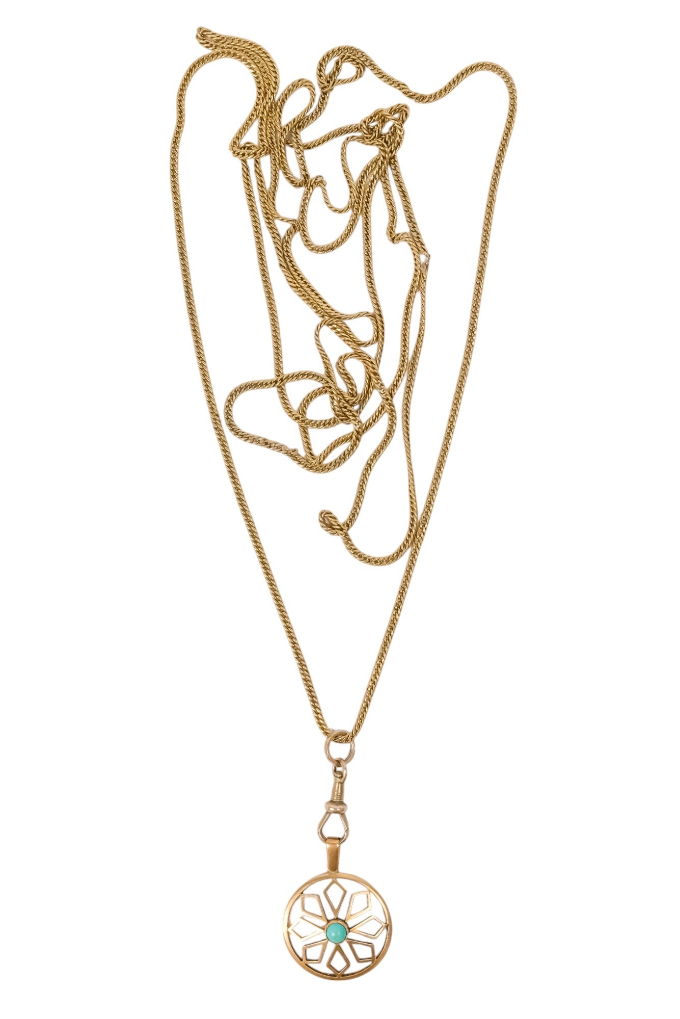 A yellow metal fine curb link chain - together with a 9ct circular pendant, 140cm long, 20g.