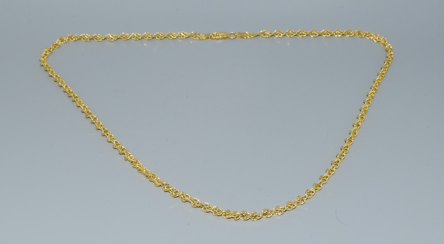 9ct gold Byzantine style fancy link neck chain appears unworn with lobster claw catch 48cm long 4.0grams
