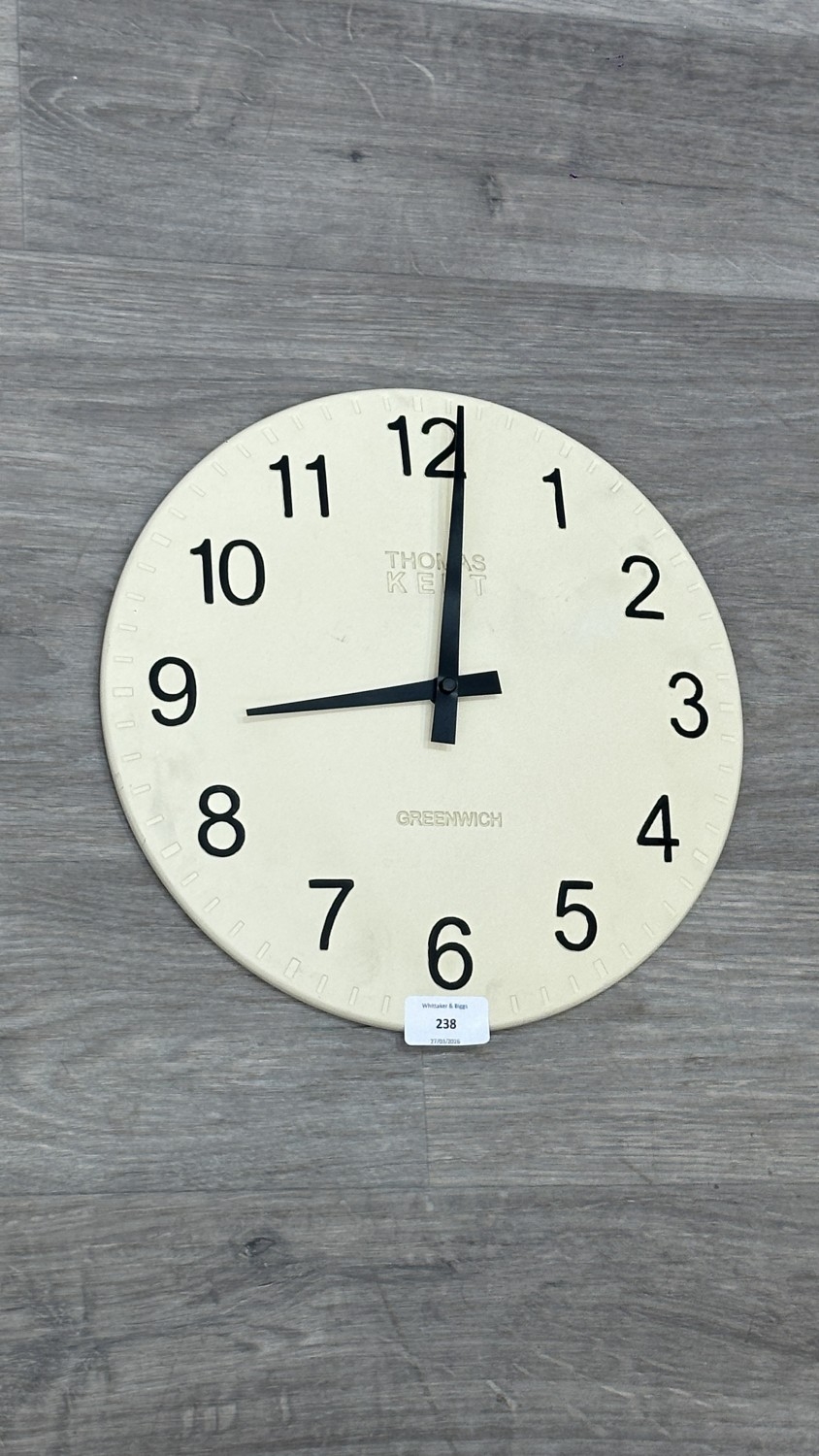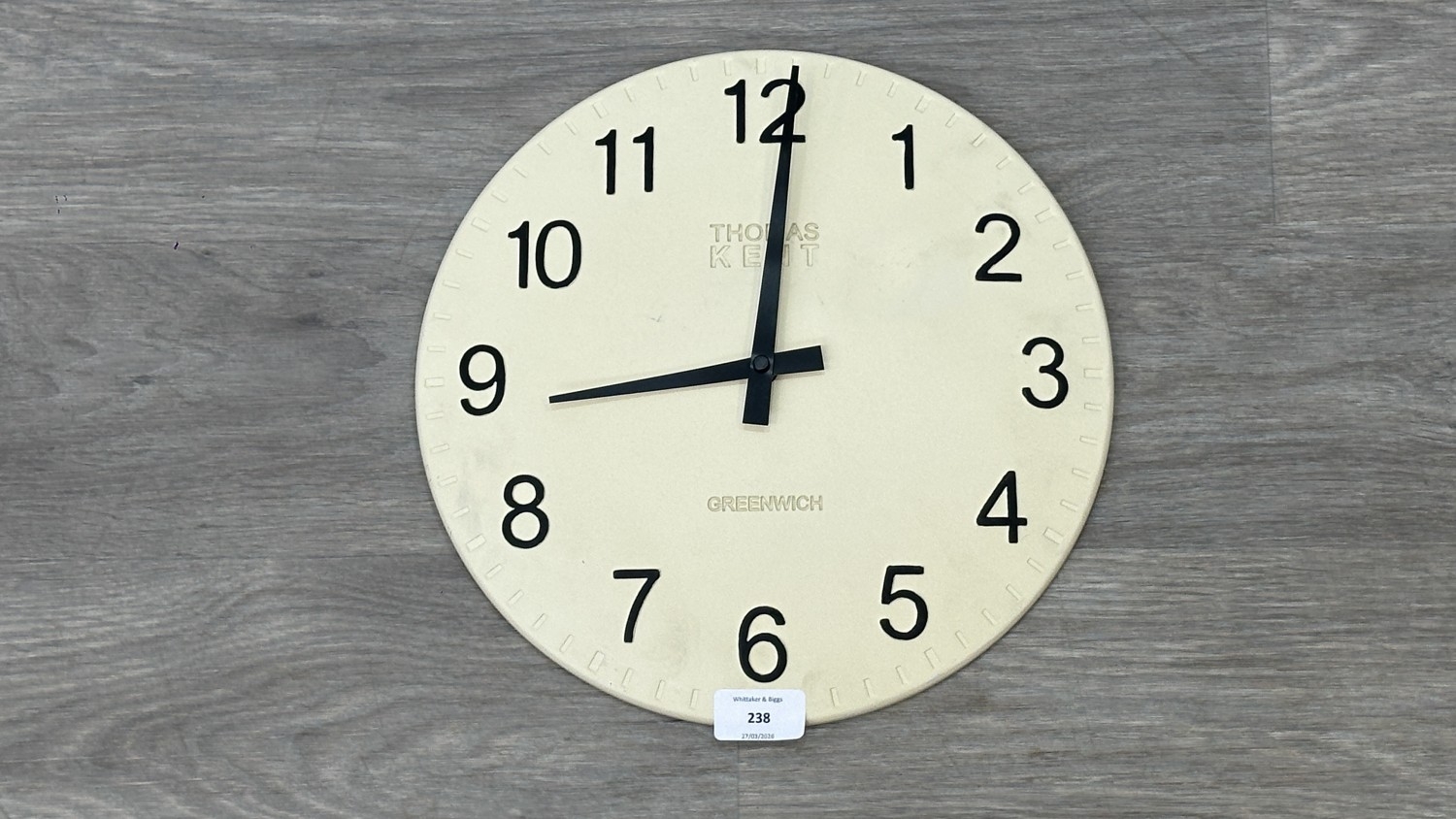 A mid/late 20th century Thomas Kent Greenwich battery operated circular wall clock - approx. 30cm diameter