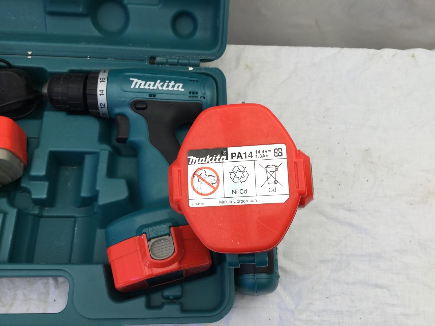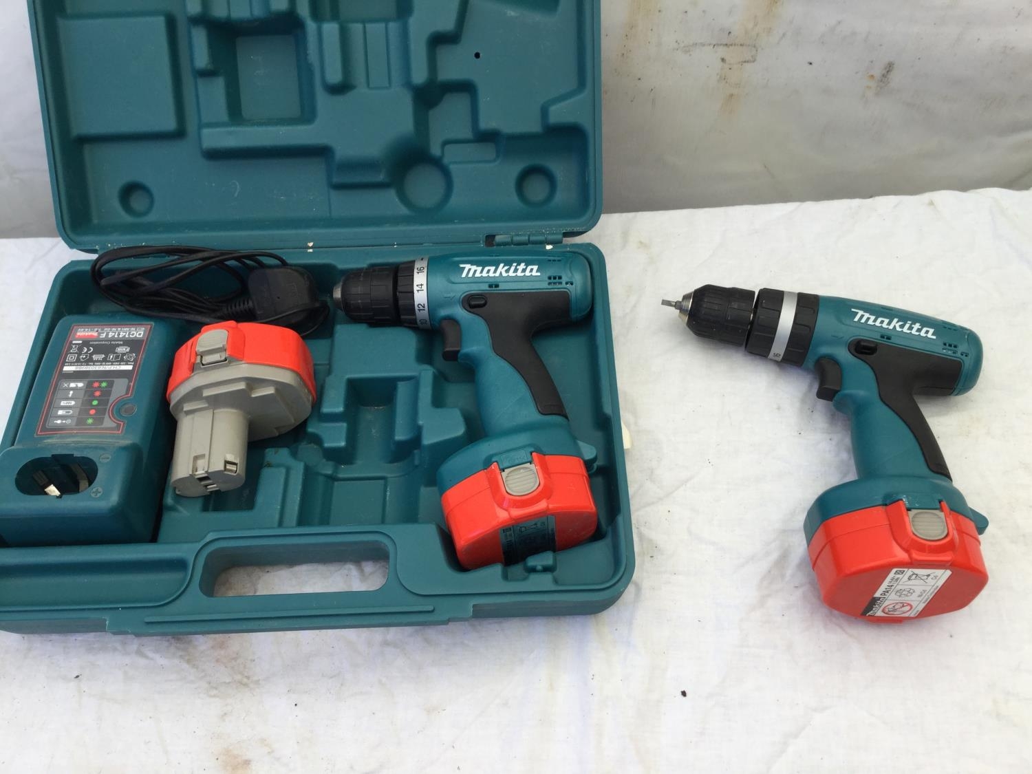 MAKITA RECHARGABLE 14.4V DRILL WITH 2 BATTERYS IN CASE AND A MAKITA 14.4 V DRILL NO CASE W/O