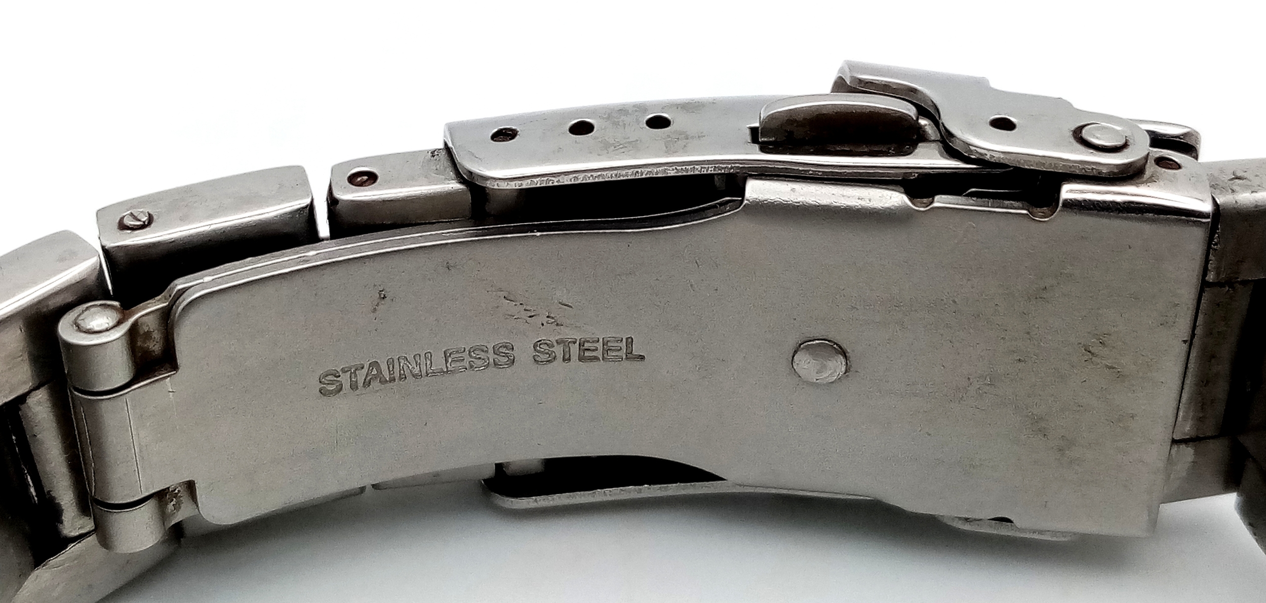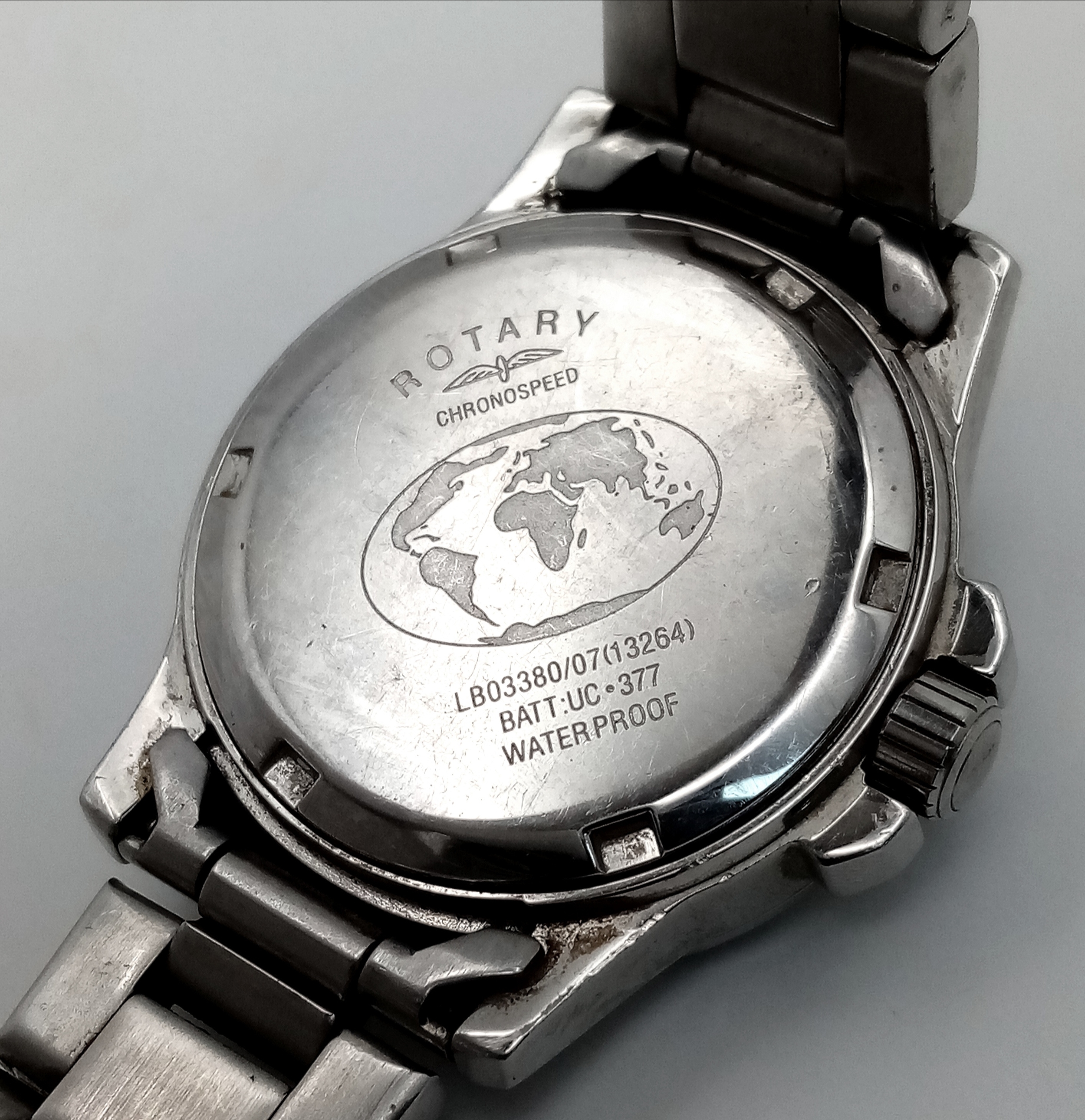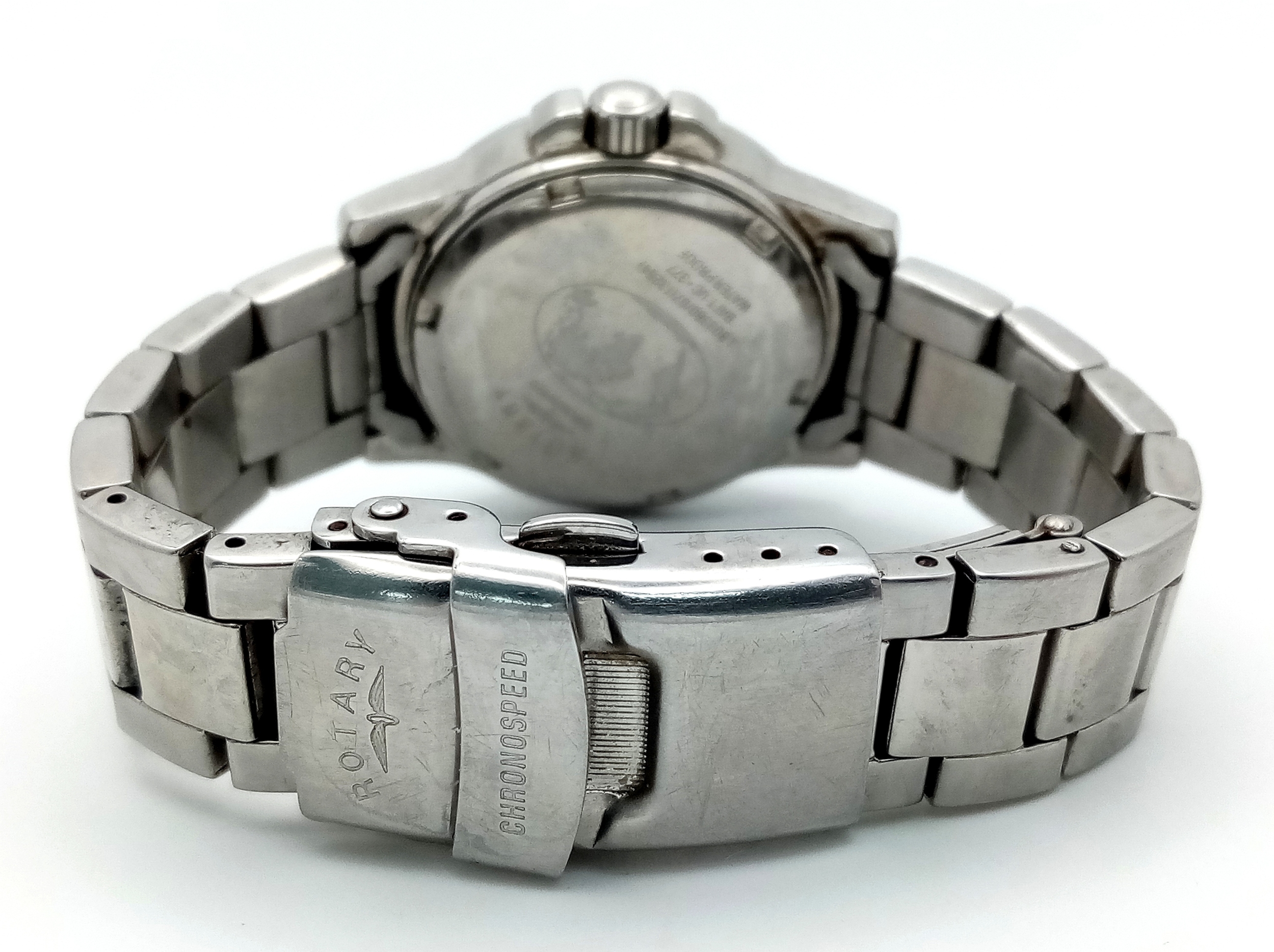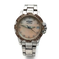 ROTARY STEEL STONE SET BRACELET WATCH WITH DATE FUNCTION AND MOTHER OF PEARL DIAL. IN FULL WORKING ORDER. S/A 1445-2.