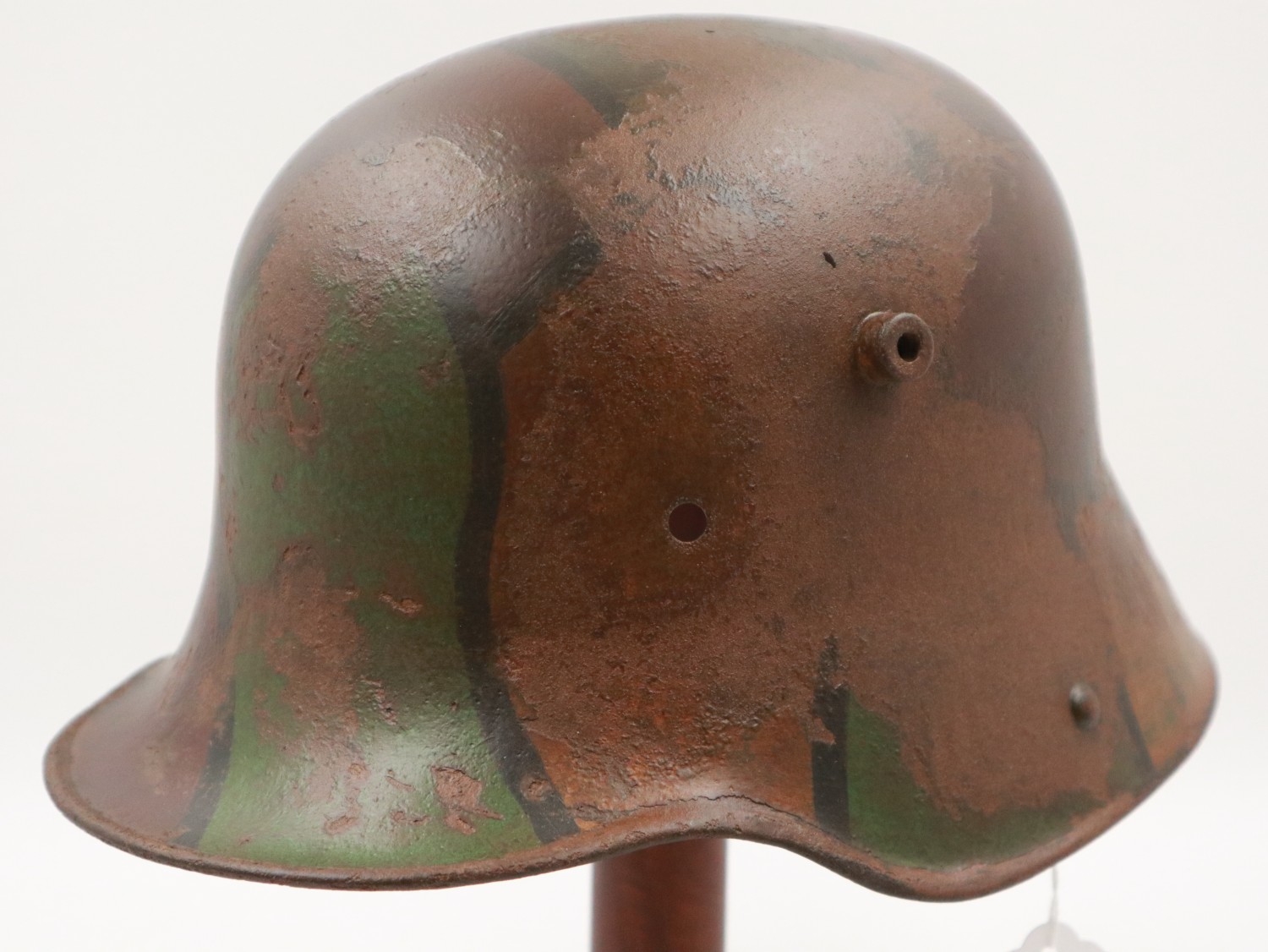 WWI Imperial German M16 Stahlhelm shell, retaining lots of the original jigsaw pattern camouflage design remaining. UK P&P Group 2 (£24+VAT for the first lot and £5+VAT for subsequent lots)