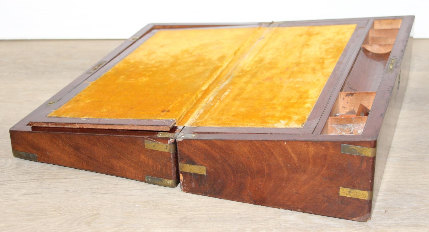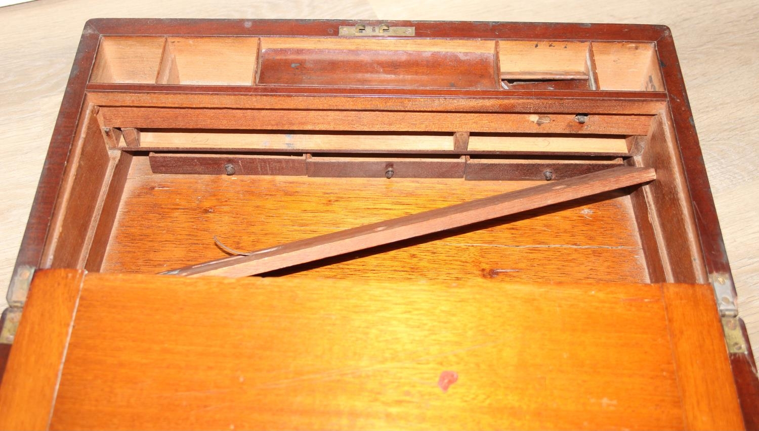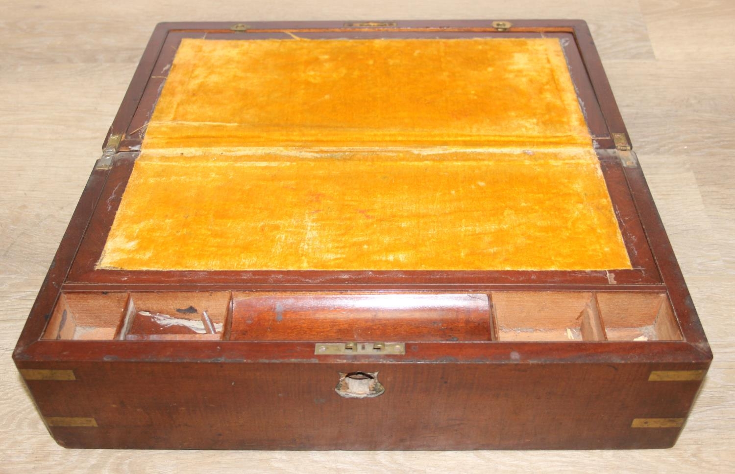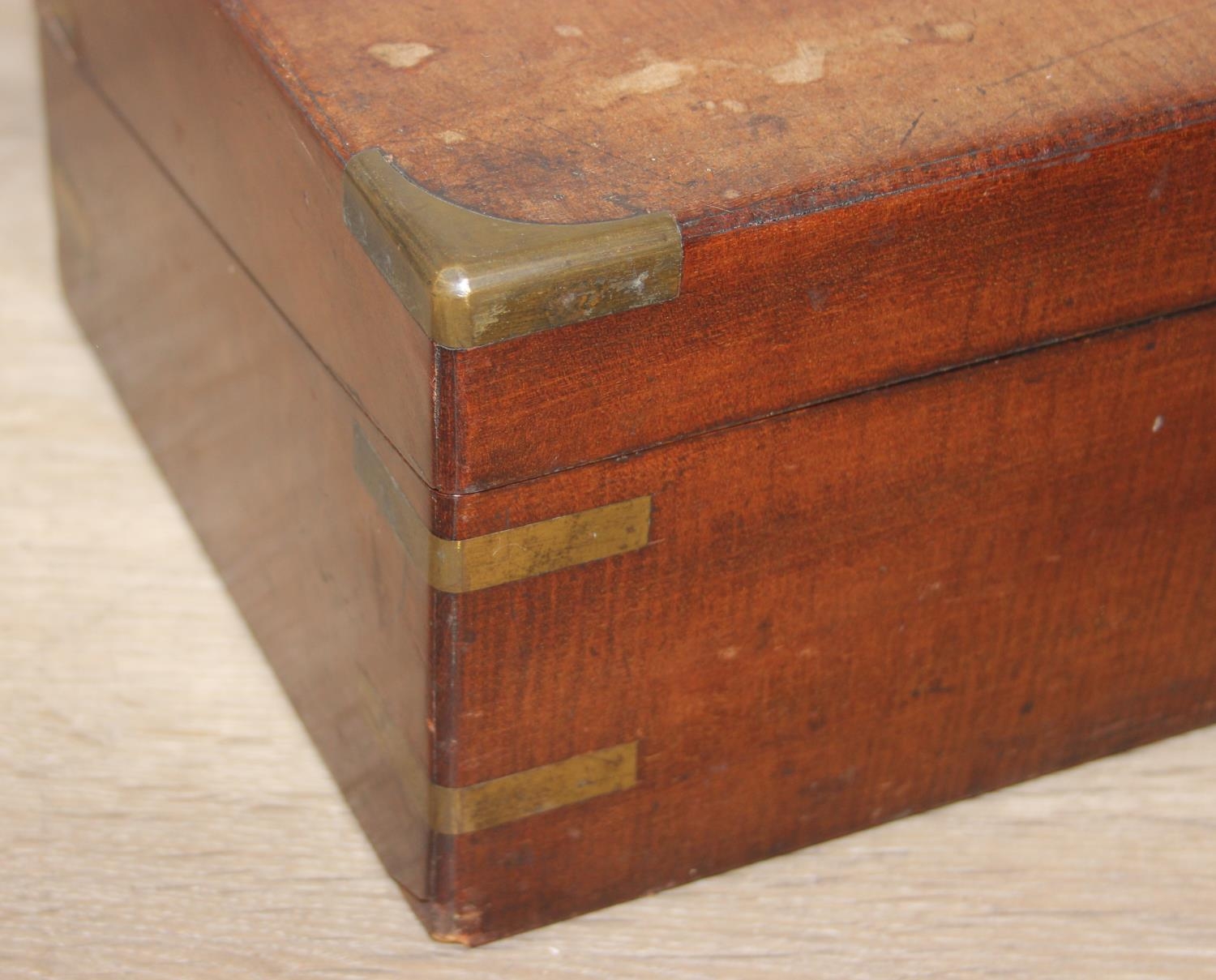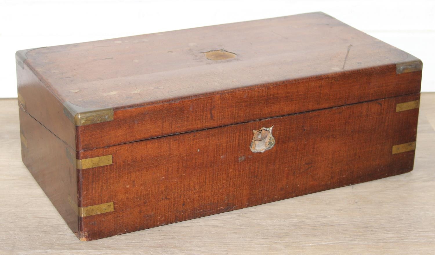 Antique mahogany campaign writing slope with brass corners and banding, restoration project, 45cm x 25cm x 16cm