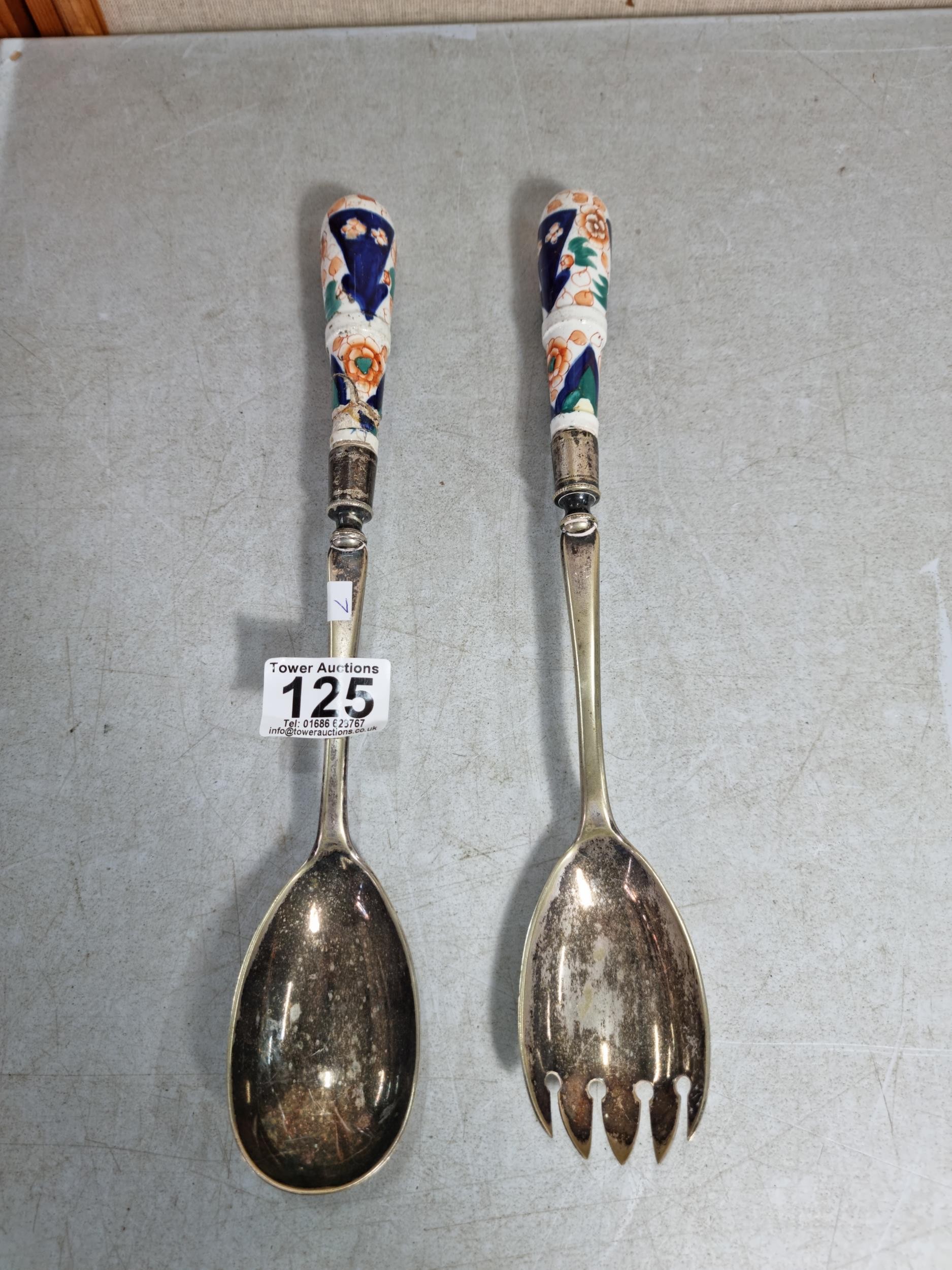 Rare early antique Gaudy Welsh pair of ladle spoons, one A/F to the handle, the other has no cracks or chips.