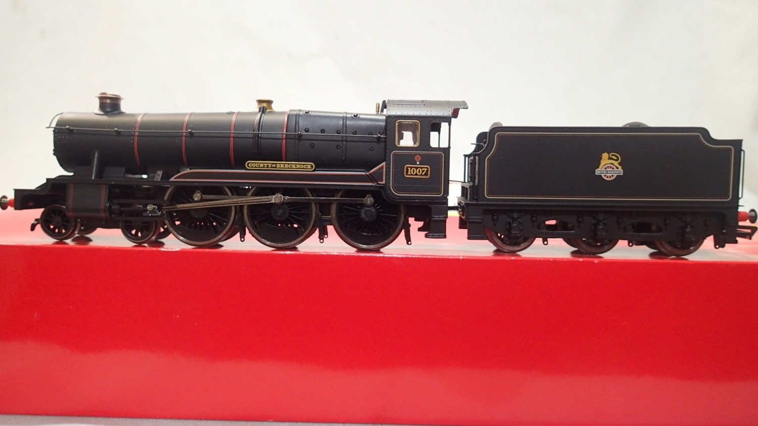 Hornby R2558, county class, 1007, 'County of Brecknock', Black, early crest, excellent condition, boxed. UK P&P Group 1 (£18+VAT for the first lot and £2+VAT for subsequent lots)