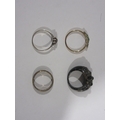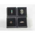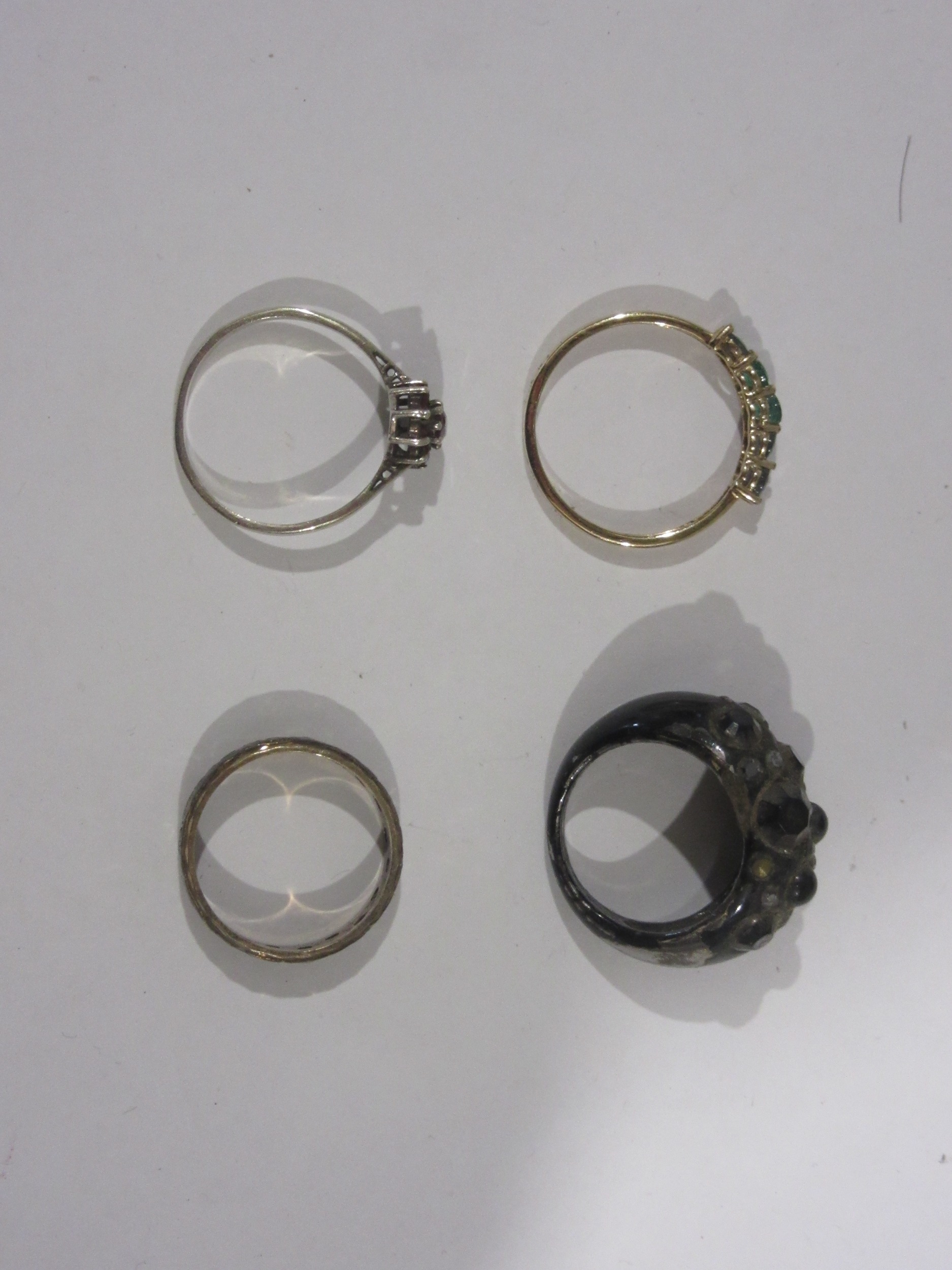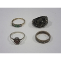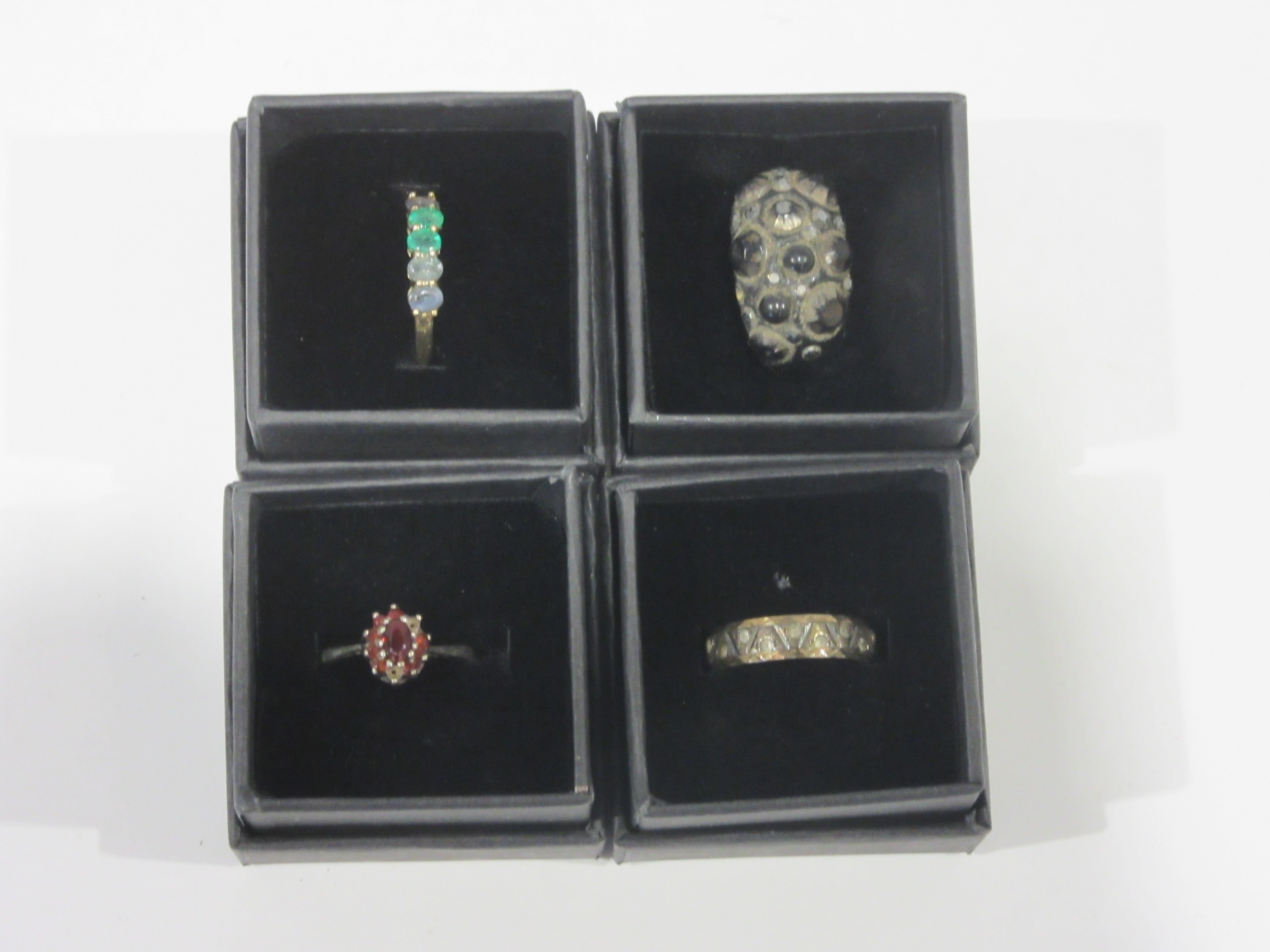Four dress rings, eternity, half hoop, silver and garnet etc