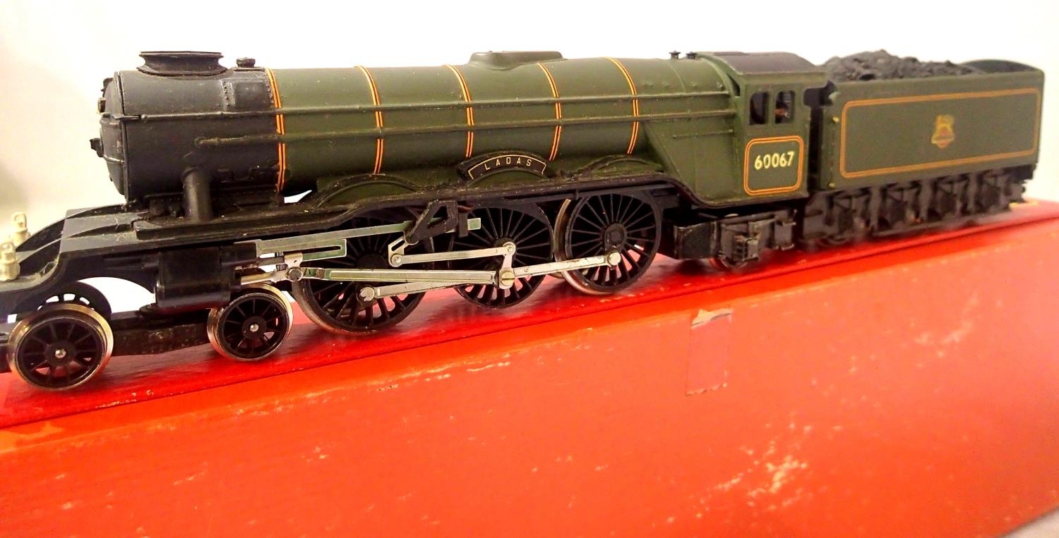 Triang Hornby Class A3, refinished, Green, Early Crest, 60067, LADAS in very good condition, detailed, box poor. P&P Group 1 (£14+VAT for the first lot and £1+VAT for subsequent lots)