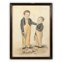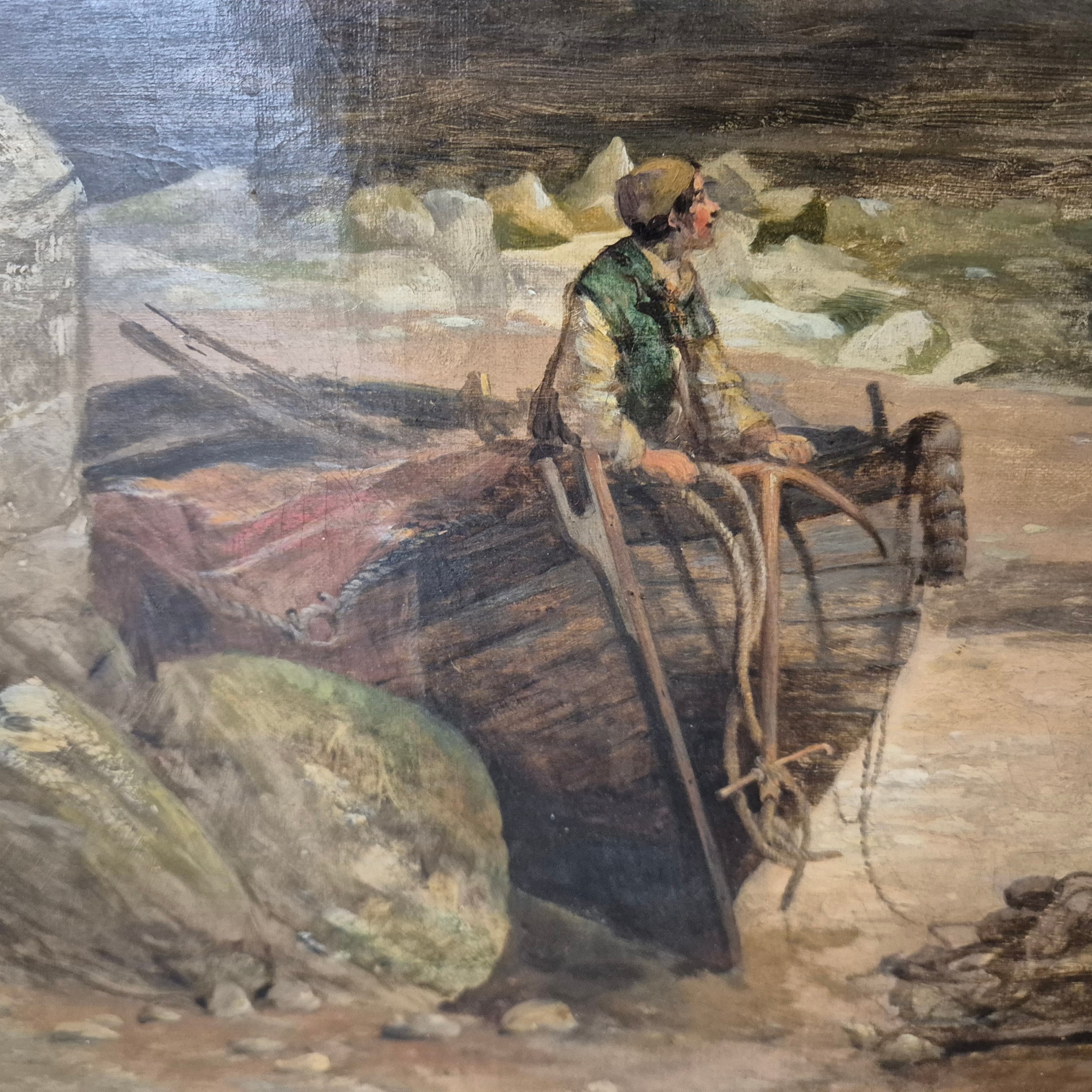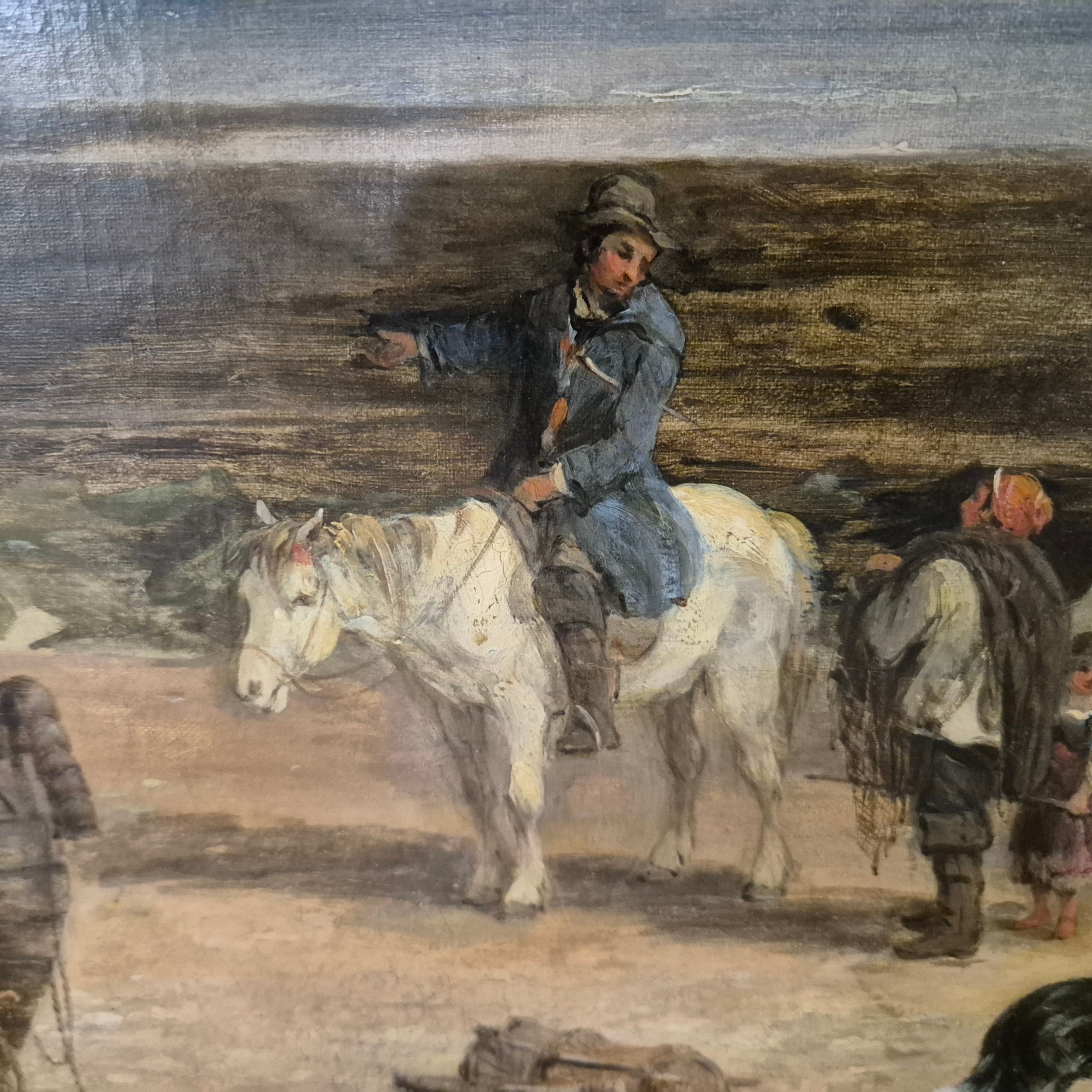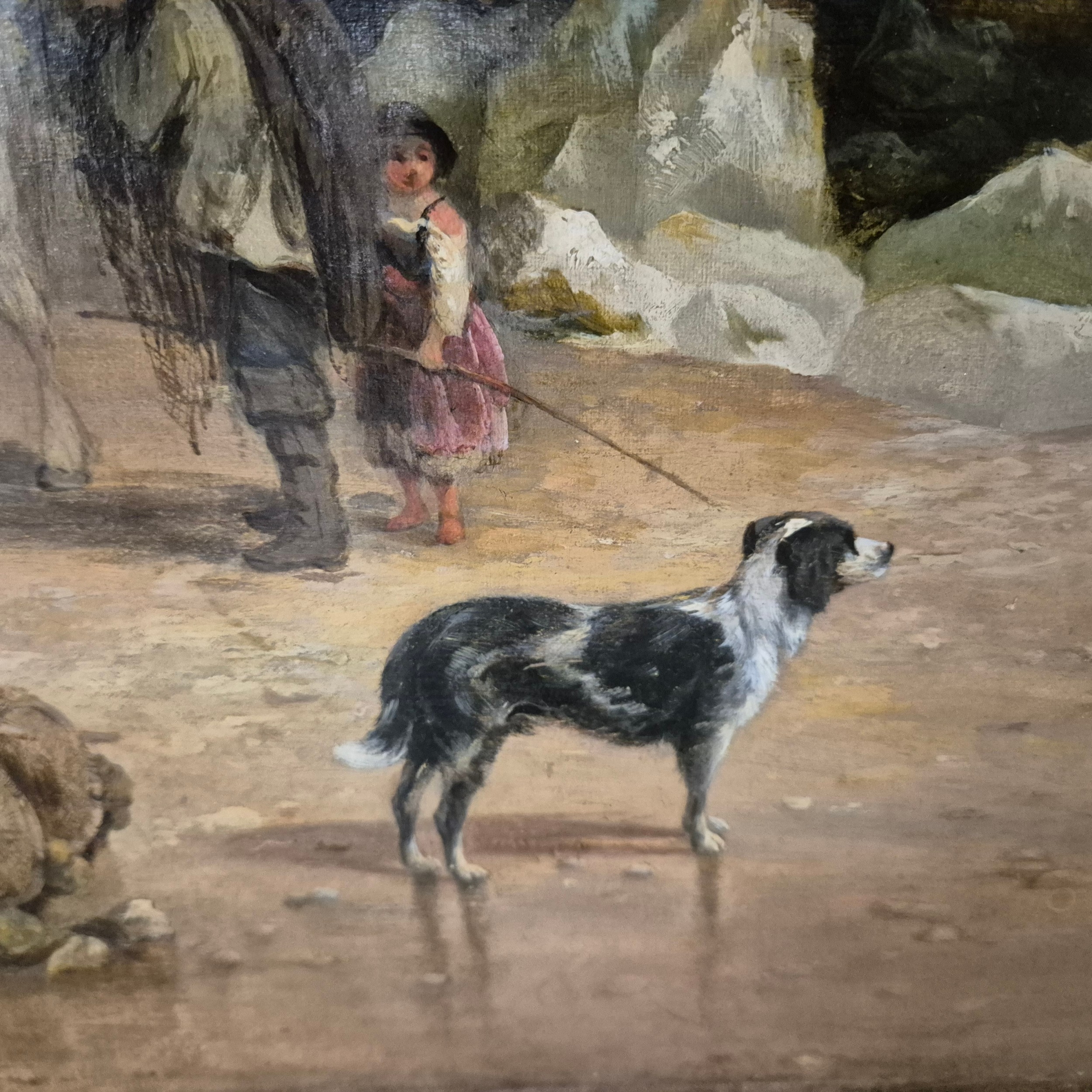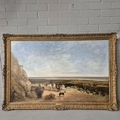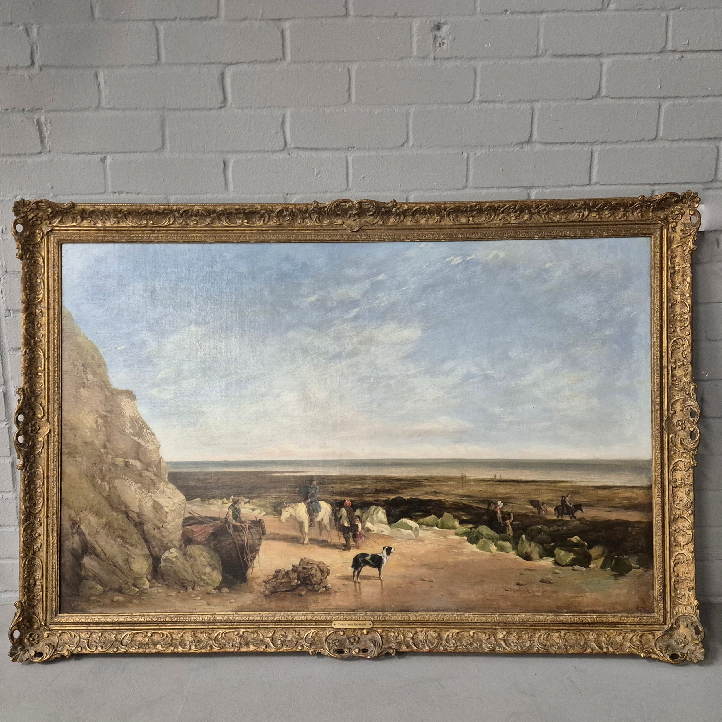 THOMAS FRANCIS WAINEWRIGHT (1794-1883). FIGURES ON THE FORESHORE. oil on canvas, in gilt frame. Bears M. Newman dealers label to reverse. 128cm W x 86cm H.