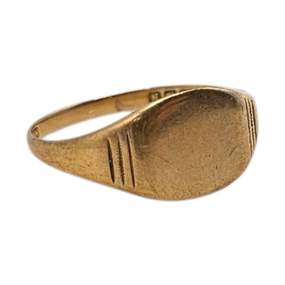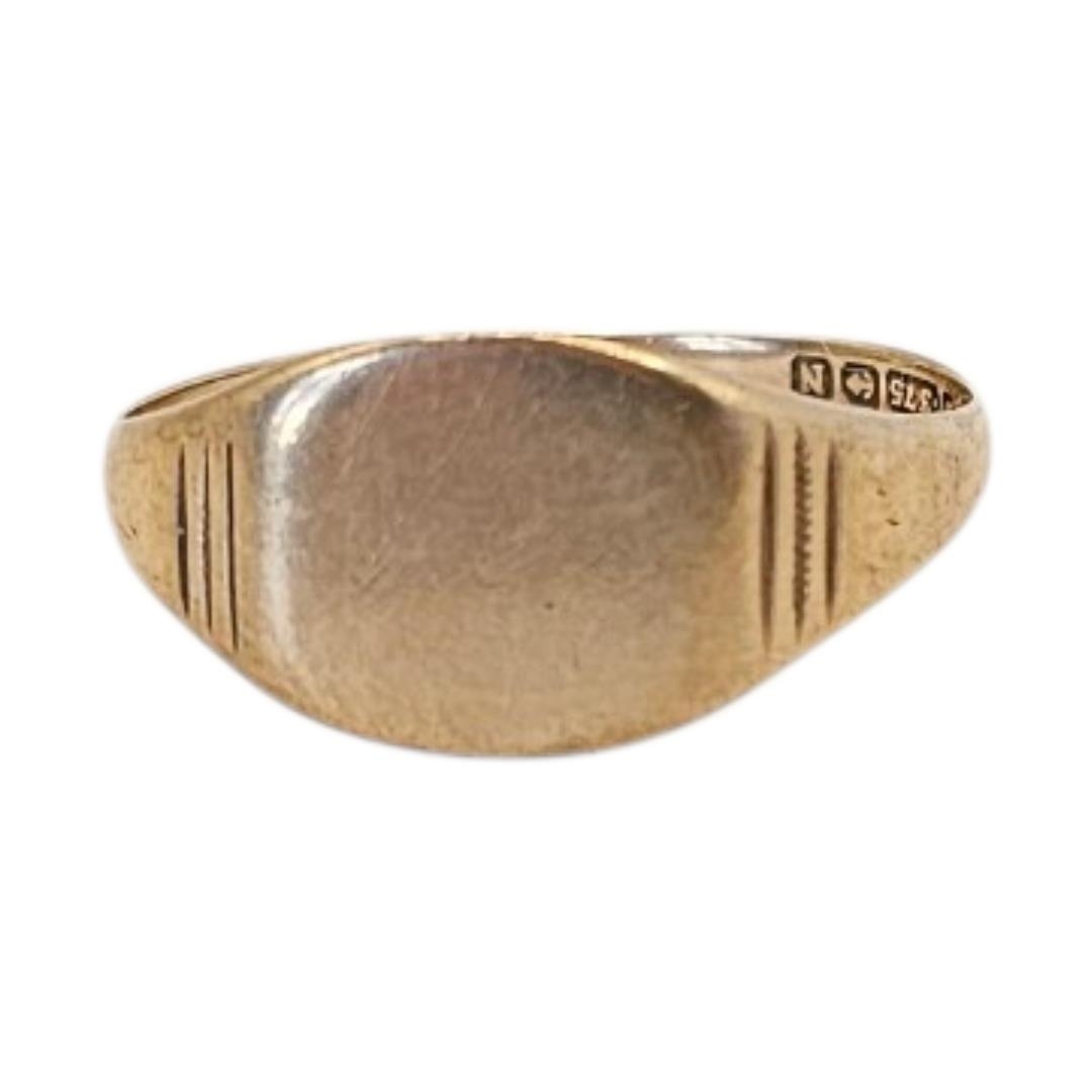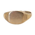 A VINTAGE 9CT GOLD GENT’S ART DECO STEPPED DESIGN SIGNET RING.