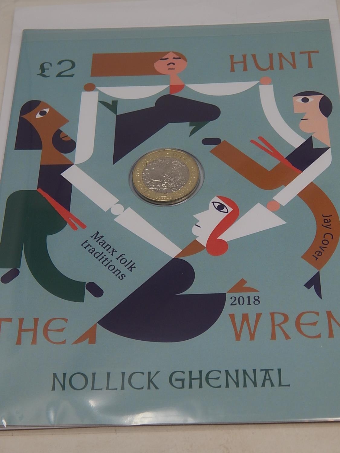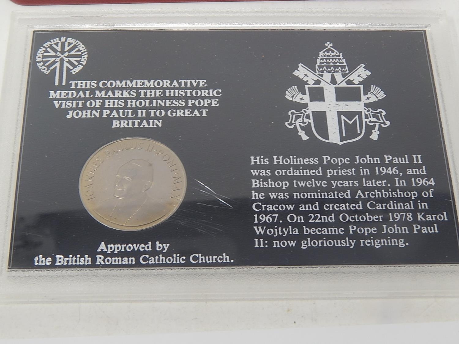 2018 Wren £2 coin in pack; 2017 Falkland Islands coloured 50p in pack; Gibraltar 2018 coloured 50p in pack; Gibraltar 2017 Christmas 50p in pack; commemorative medal of Pope John Paul II in plastic case; Tower Mint collection of five medallions in deluxe plush case; USA Great Seal medalion in pack (lot) estimate