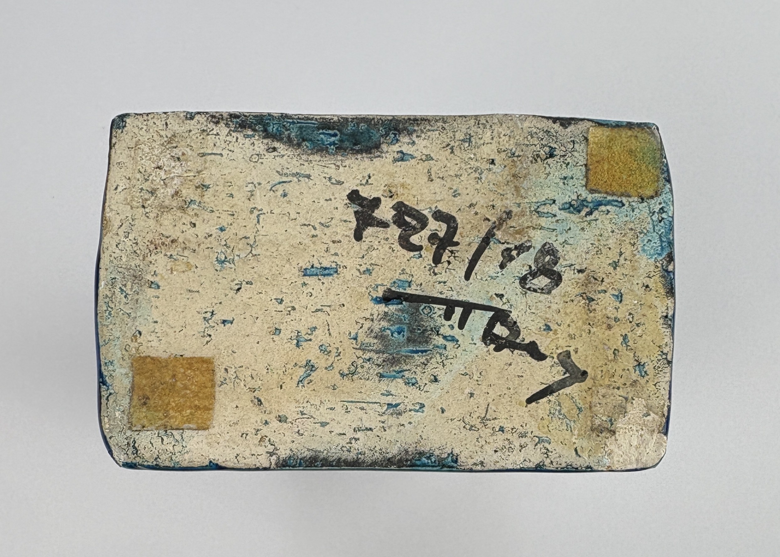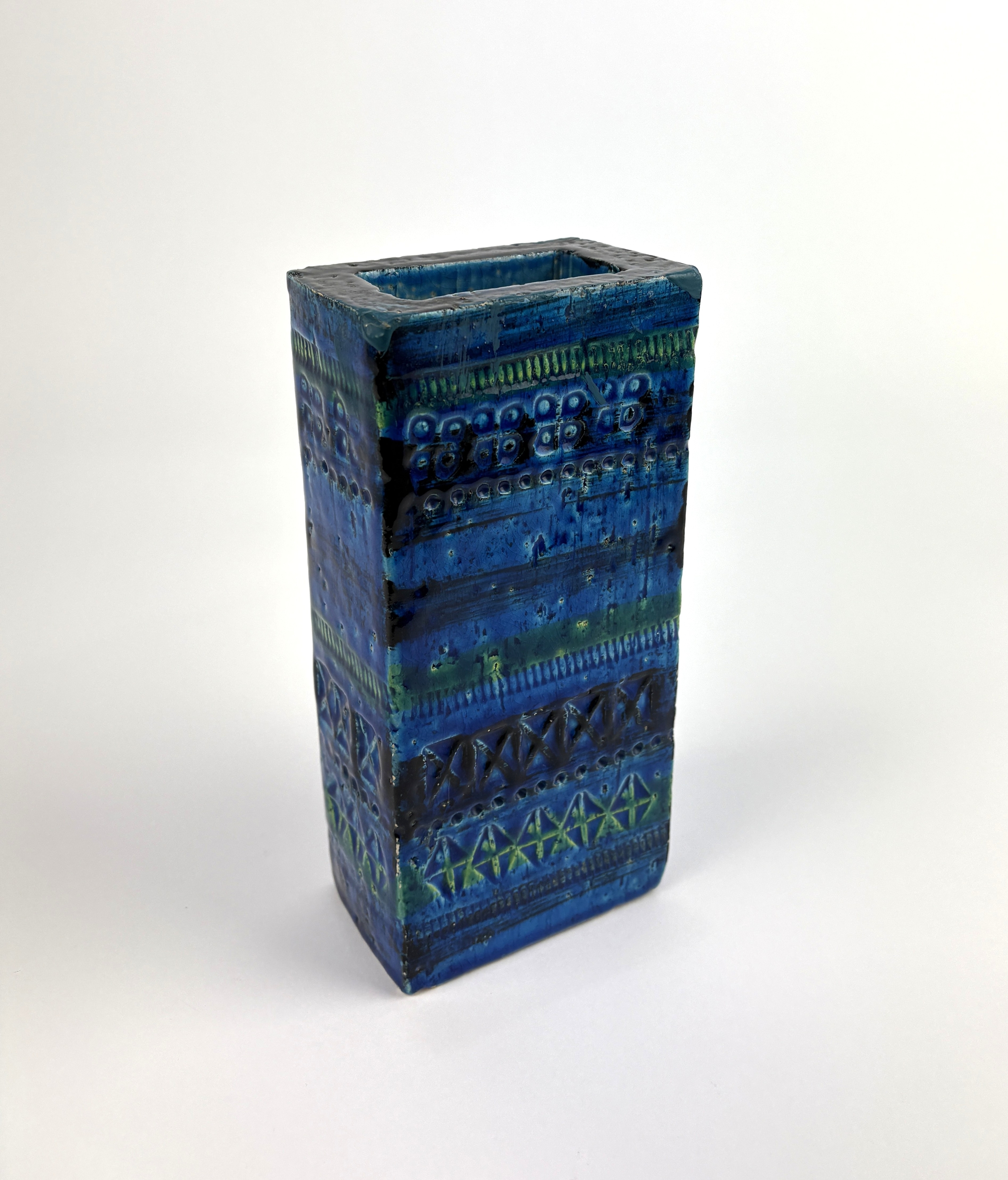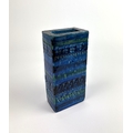 A 1970s Bitossi pottery 'Rimini Blu' vase designed by Aldo Londi, of rectangular form with impressed decoration, 18.5cm high