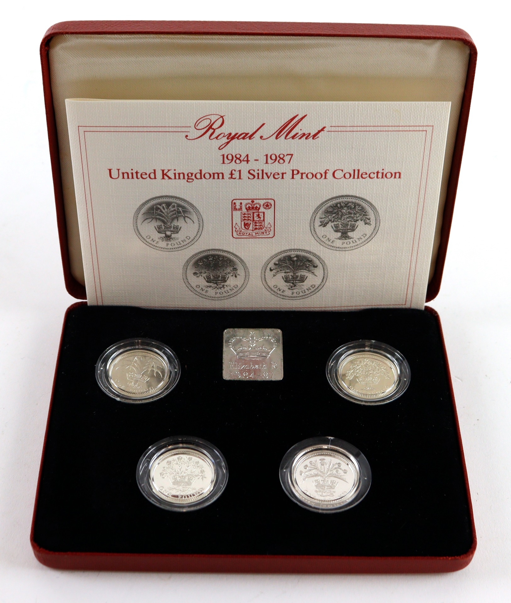 One Pound Silver Proof four coin set 1984 - 1987. FDC cased as issued