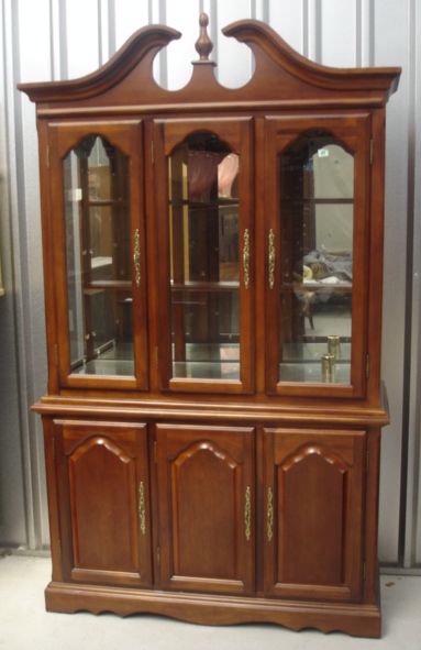 Reproduction Triple Side/Display Cabinet, panelled doors under, glass display unit over with broken arch pediment and turned knop