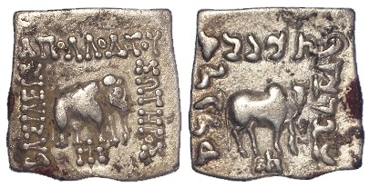 Ancient Greek (Indo-Greek): Bactria, Apollodotos I silver square Drachm, 180-160 BC. 2.38g. AVF.