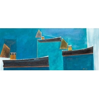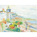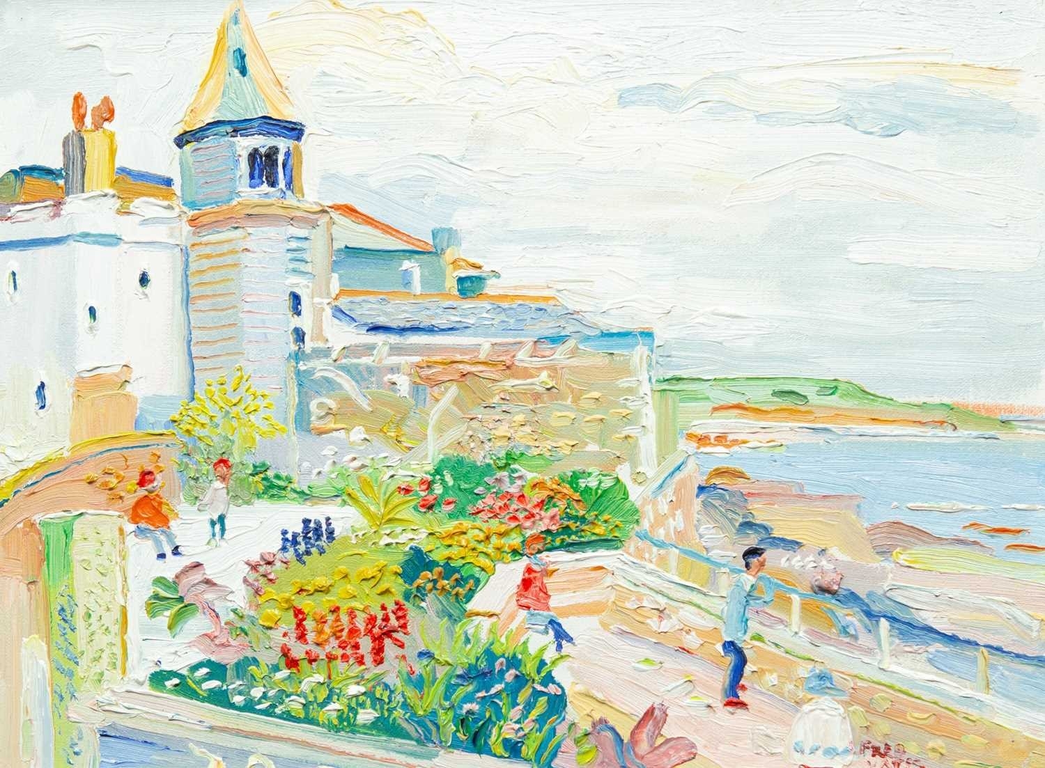 § Fred YATES (1922-2008) Marazion Oil on canvas, signed, Porthminster Gallery label verso, 30cm x 41cm, 43.5cm x 54cm framed.